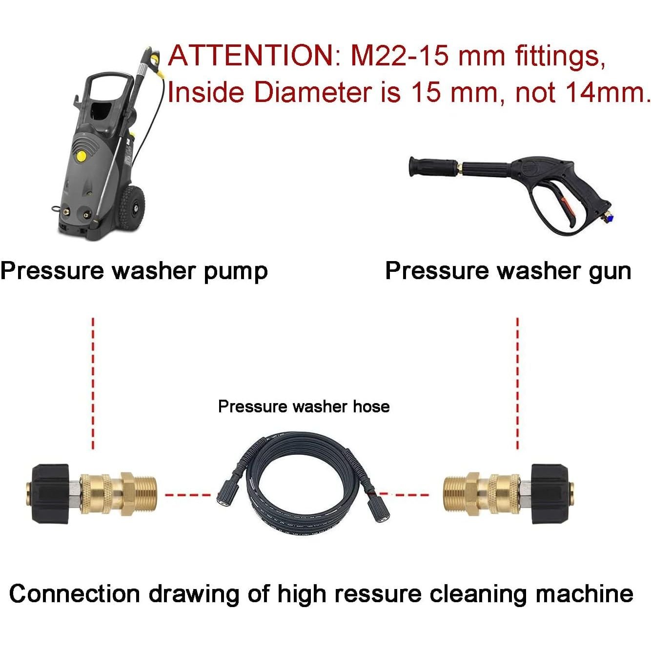 - 【High Working Pressure】M22 15mm Quick Connect is made of corrosion resistant brass. Max. Pressure is up to 5000 PSI. Pressure washer adapter kit can provide secure and quick fittings, will make your washing work more efficiently.