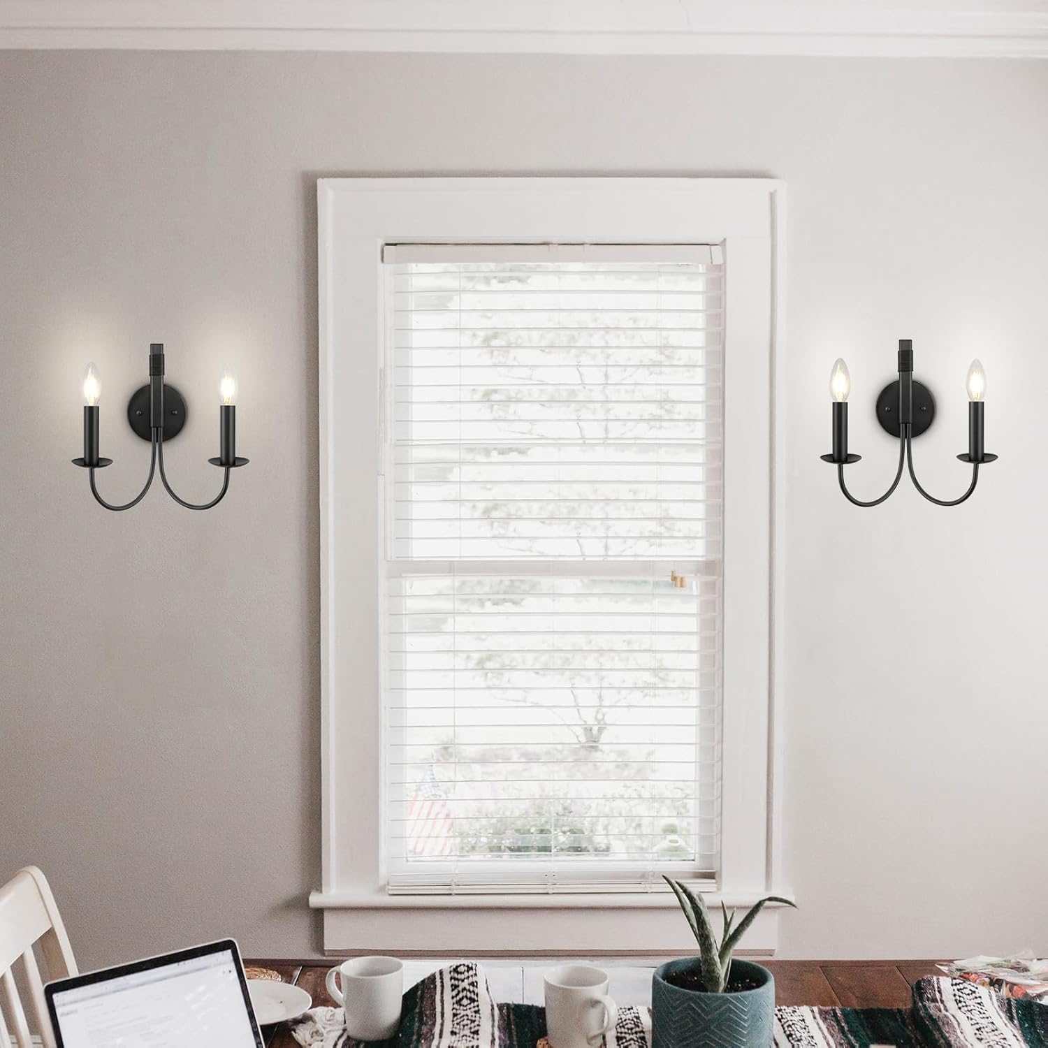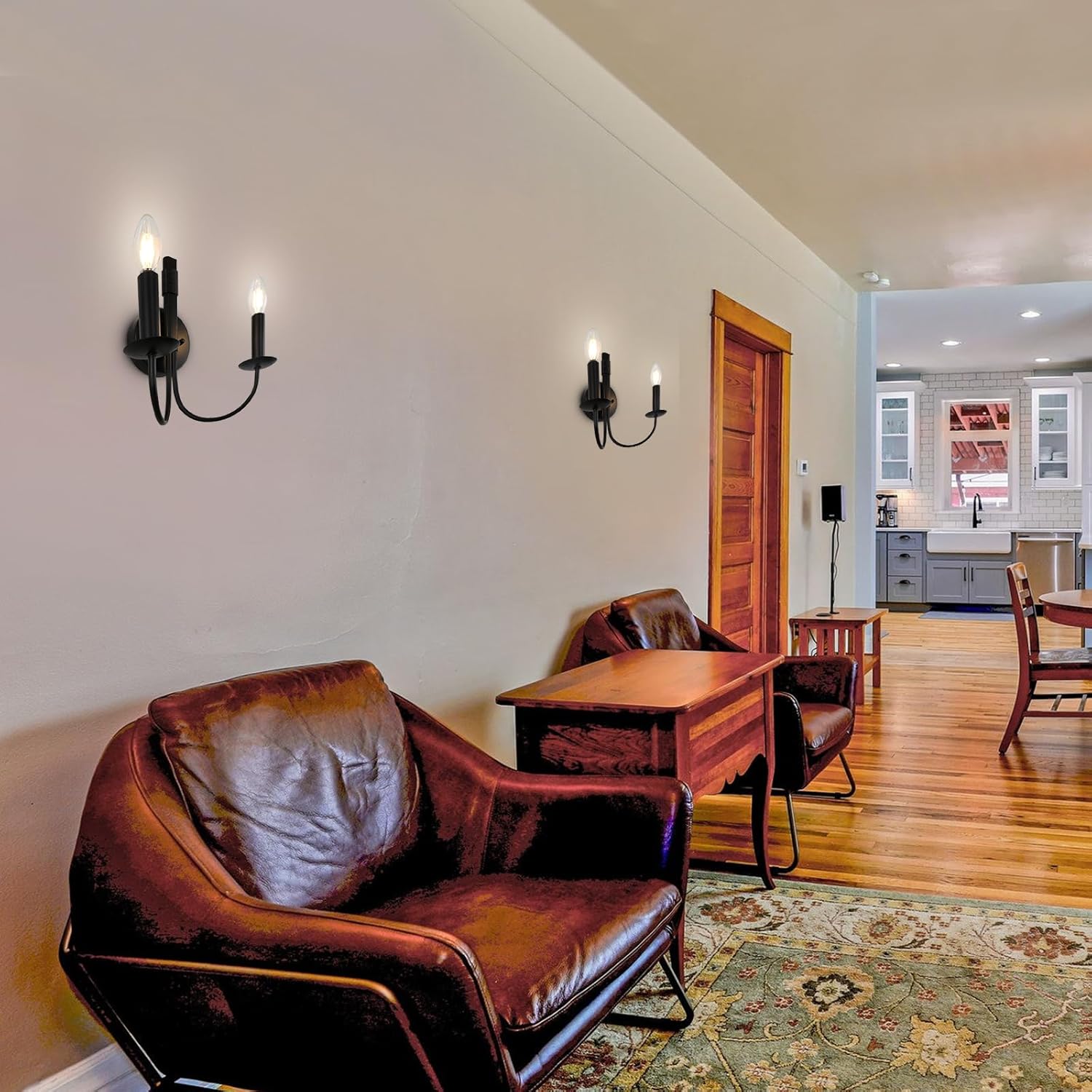 - Classic Candle Wall Sconce: Inspired by antique lighting, this 2-lights black wall sconce showcases classic rustic style with a modern update. A circular backplate supports a pair of curved arms topped by candle-style sockets for an elegant look, lending a touch of traditionalism to any space.