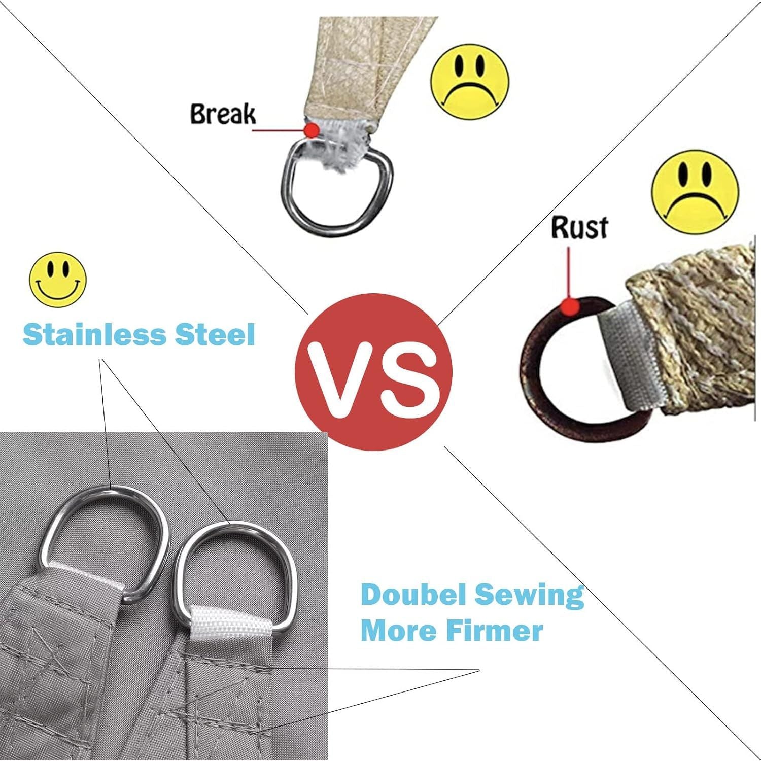 • PREMIUM MATERIALS: Our triangle sun shade sails are made of high quality polyester oxford fabric with double layer PU waterproof coating and equipped with 3 nylon ropes, which are waterproof, tear-resistant, mildew-resistant, and stain-resistant, while providing very Strong stability and elasticity.