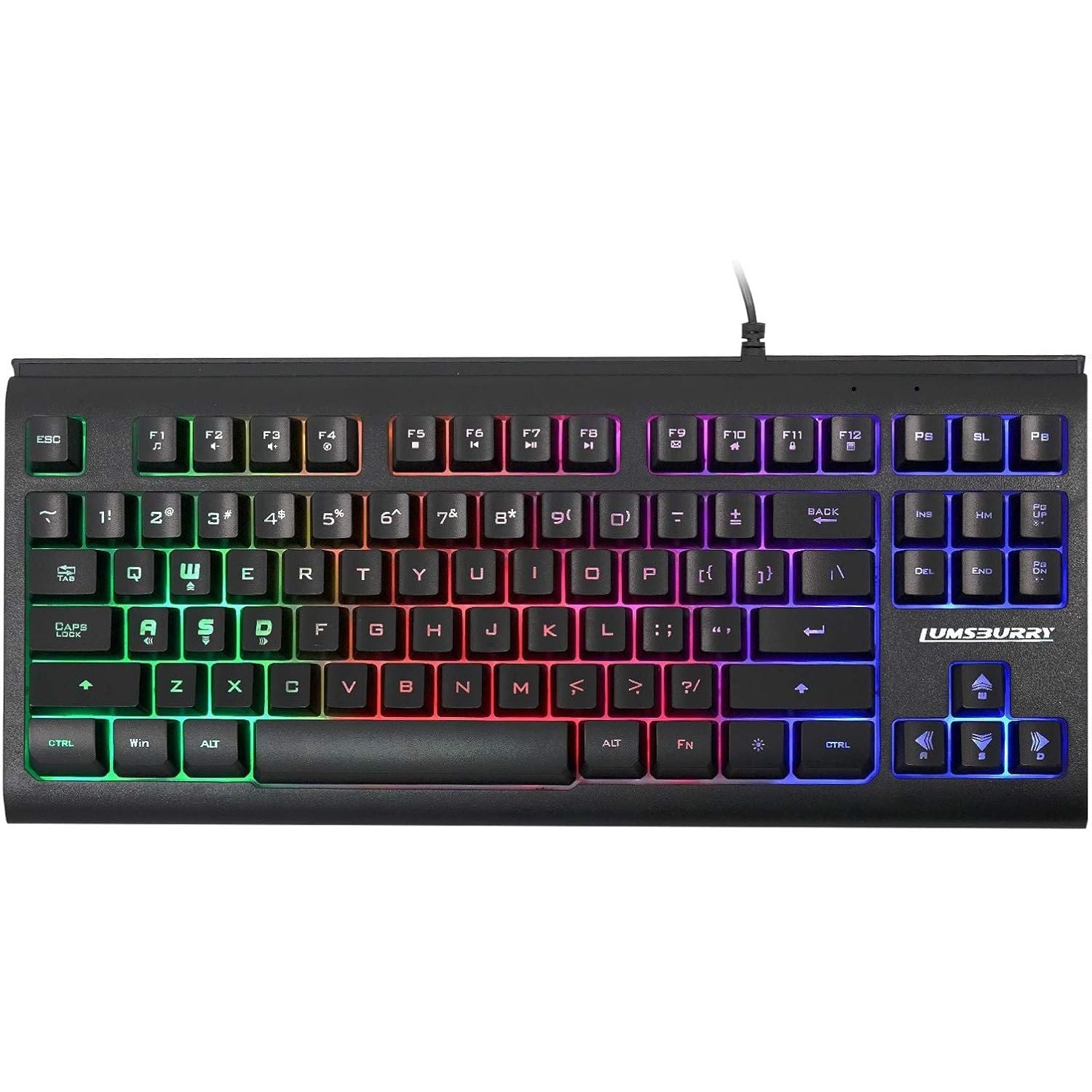 Lumsburry Computer Keyboard, 87 Keys Compact Wired USB Keyboard with Rainbow LED Light Up Backlit for PC Gaming Laptop Teclado Gamers Office Working - Just Closeouts Canada Inc.