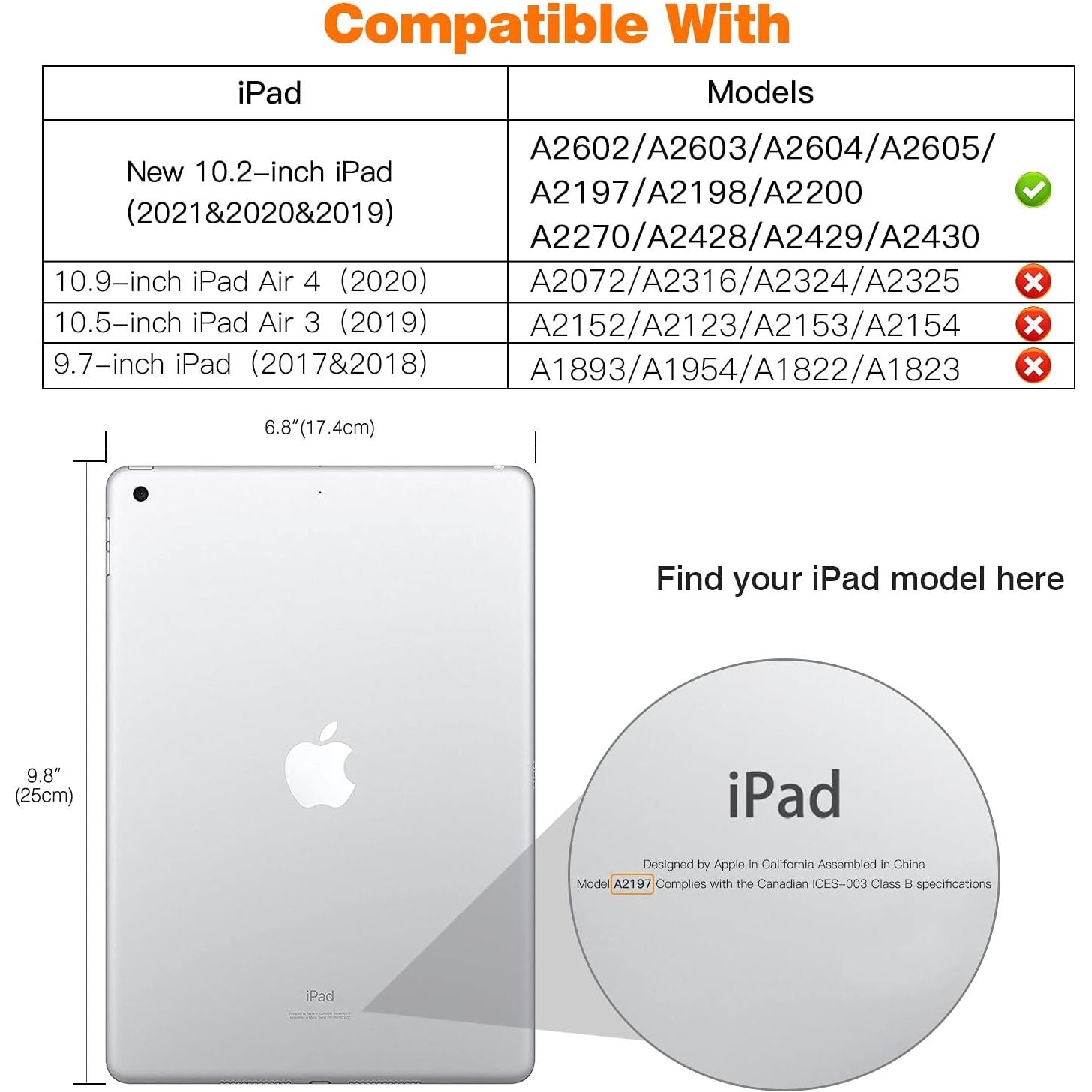 - Compatibility : Designed exclusively compatible Apple iPad 9th Generation 2021 (Model: A2602, A2603, A2604, A2605) / iPad 8th Generation 2020 (Model: A2270, A2428, A2429, A2430), iPad 7th Generation 2019 (Model: A2197, A2198, A2200). Note: DO NOT fit other Tablet. Access to all features and controls