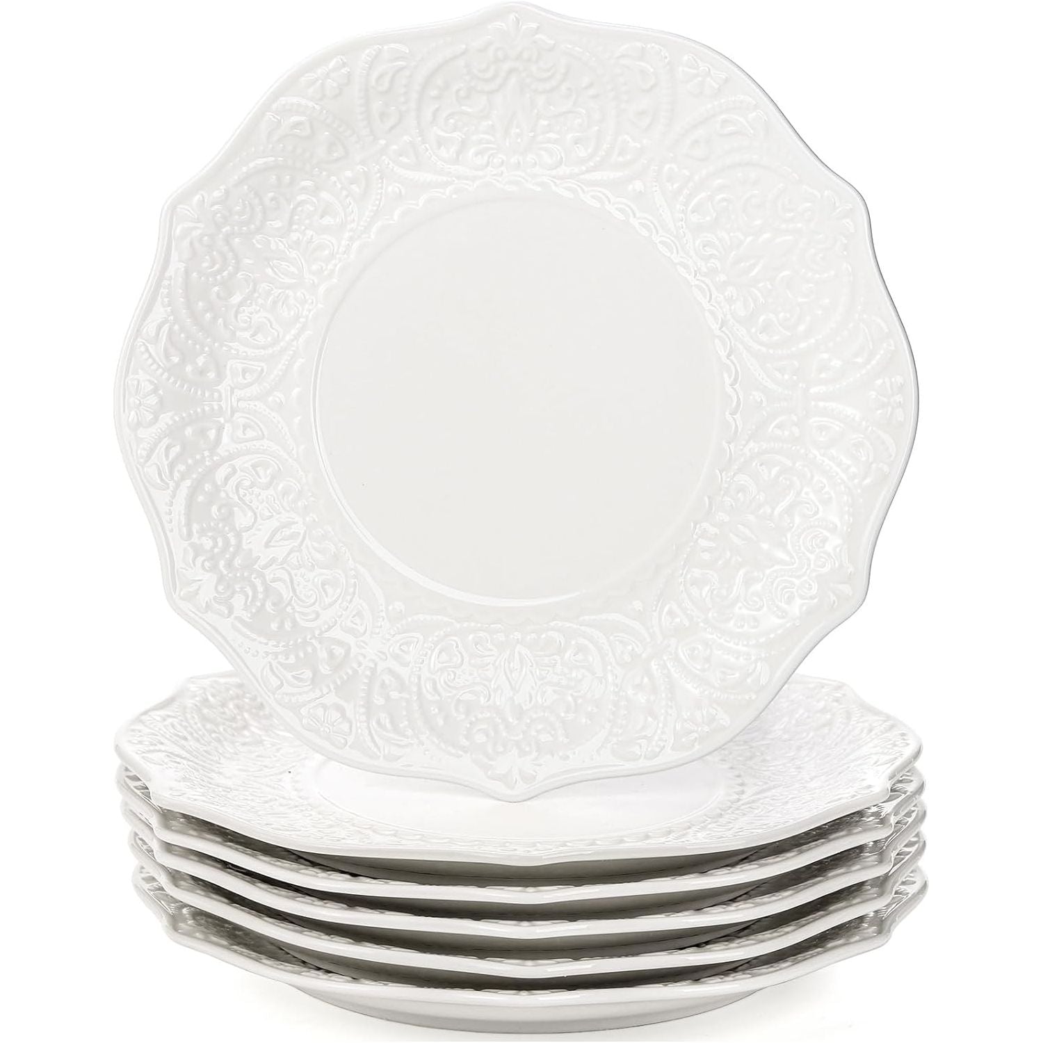 SOUJOY Set of 6 Salad Plate, 8 Inch Porcelain Dessert Serving Plates, Embossed Printing Small Dinner Dish for Pancakes, Steak, Microwave, Dishwasher Safe 7 - Just Closeouts Canada Inc.