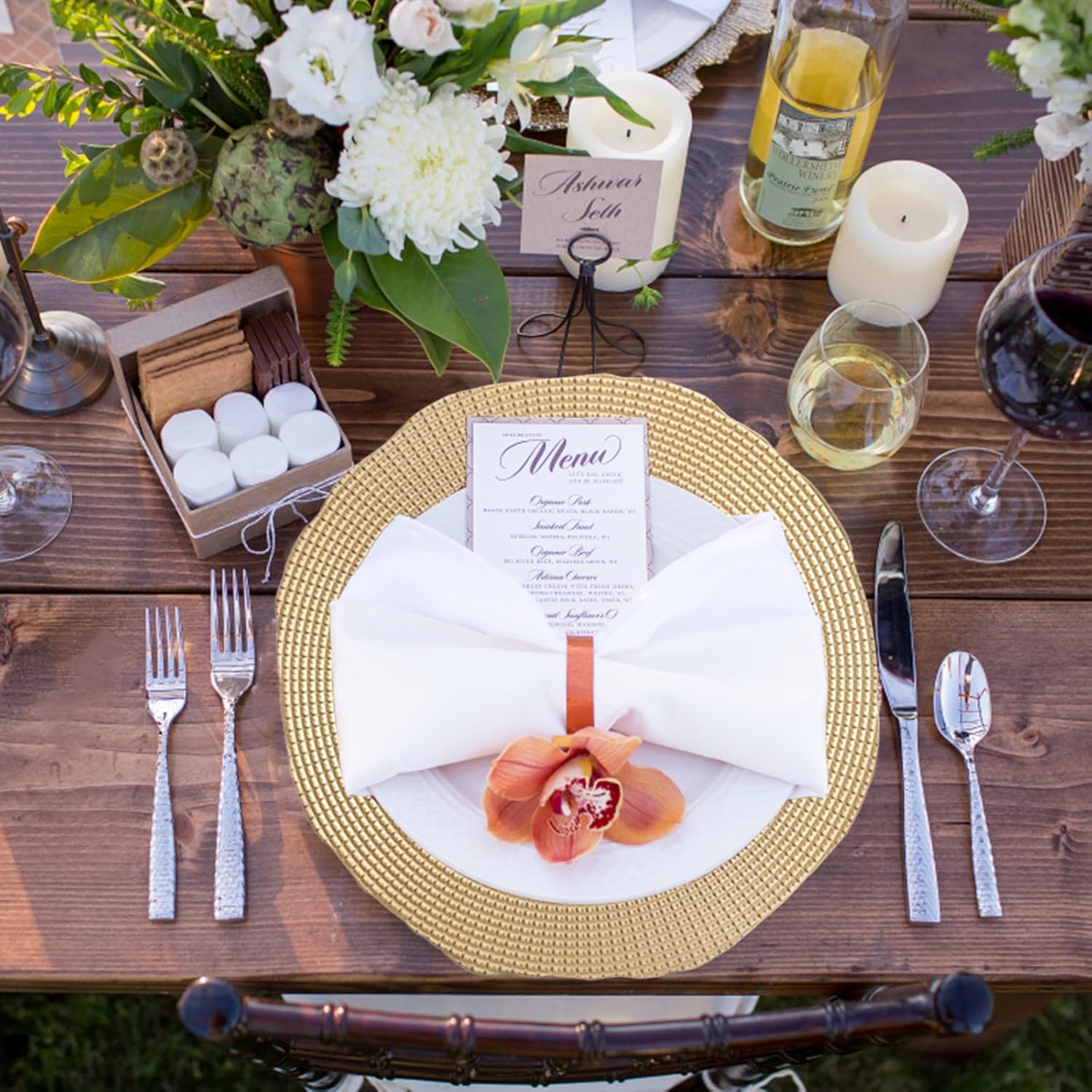 • The gold decorative plates are so gorgeous and elegant, can add classy and festive touch to your dinner, perfect for setting dinner table for Fall, wedding, anniversary, baby shower, Thanksgiving, Christmas, or any catering event and formal banquets, you will get compliments on their beauty every time!