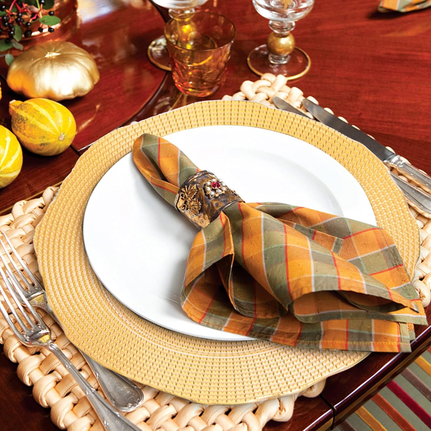• Each gold charger for dinner plates are packaged in single bubble bag so that not one will be scratched and cracked, and they are easy to clean by hand, please don't put them in dishwasher or microwave.