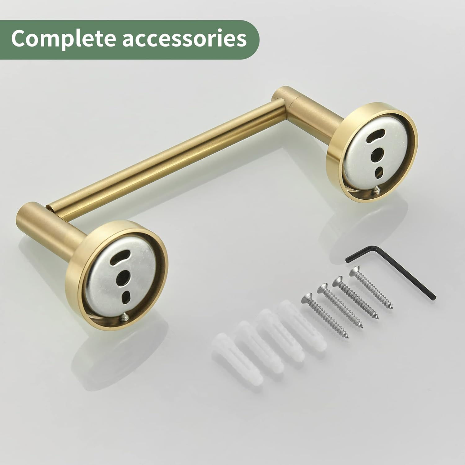 - [Multiple Options]: You can install the brushed gold toilet paper holder horizontally or vertically, and you can install it in your own way. It can also be used as a towel holder to hang towels to provide you with another choice.