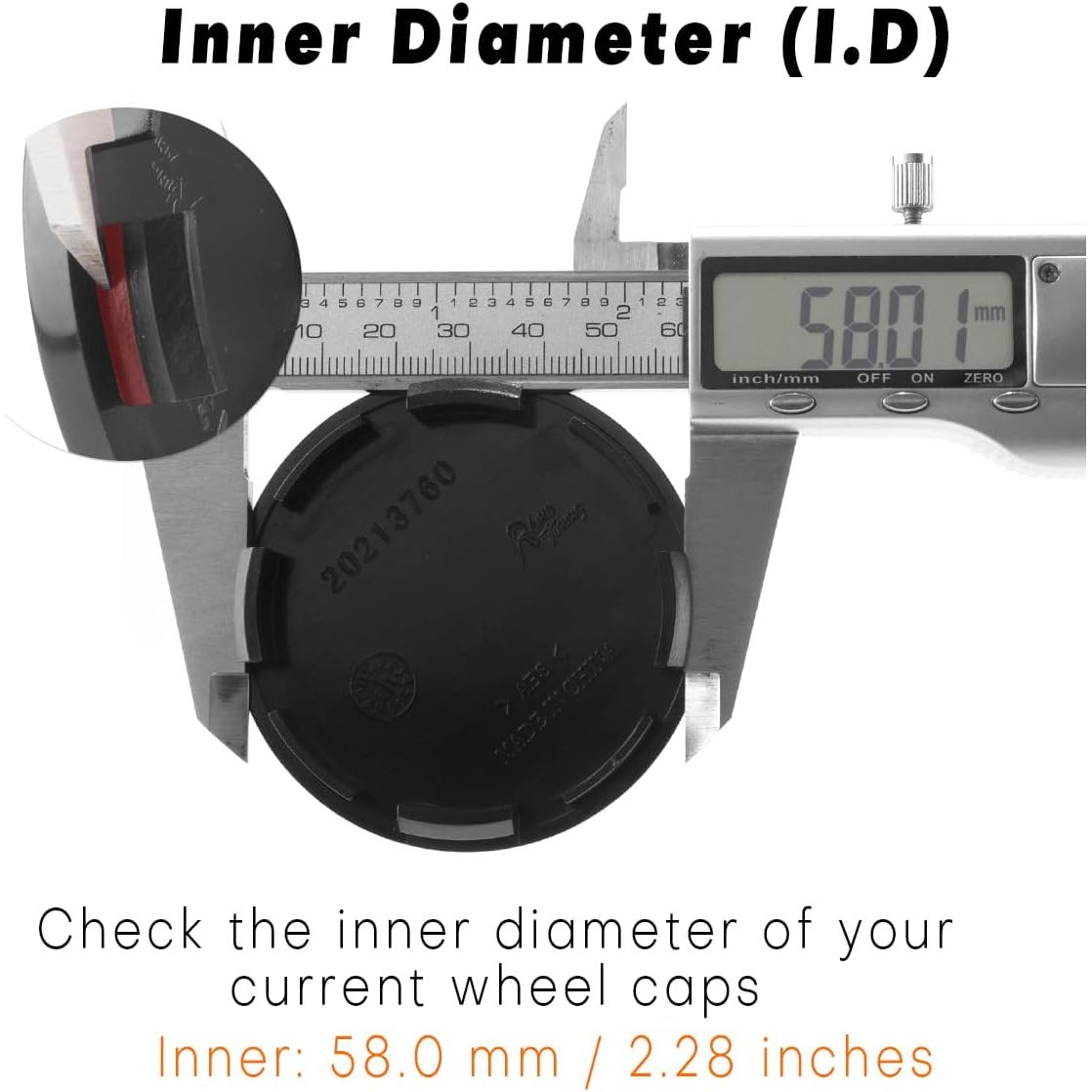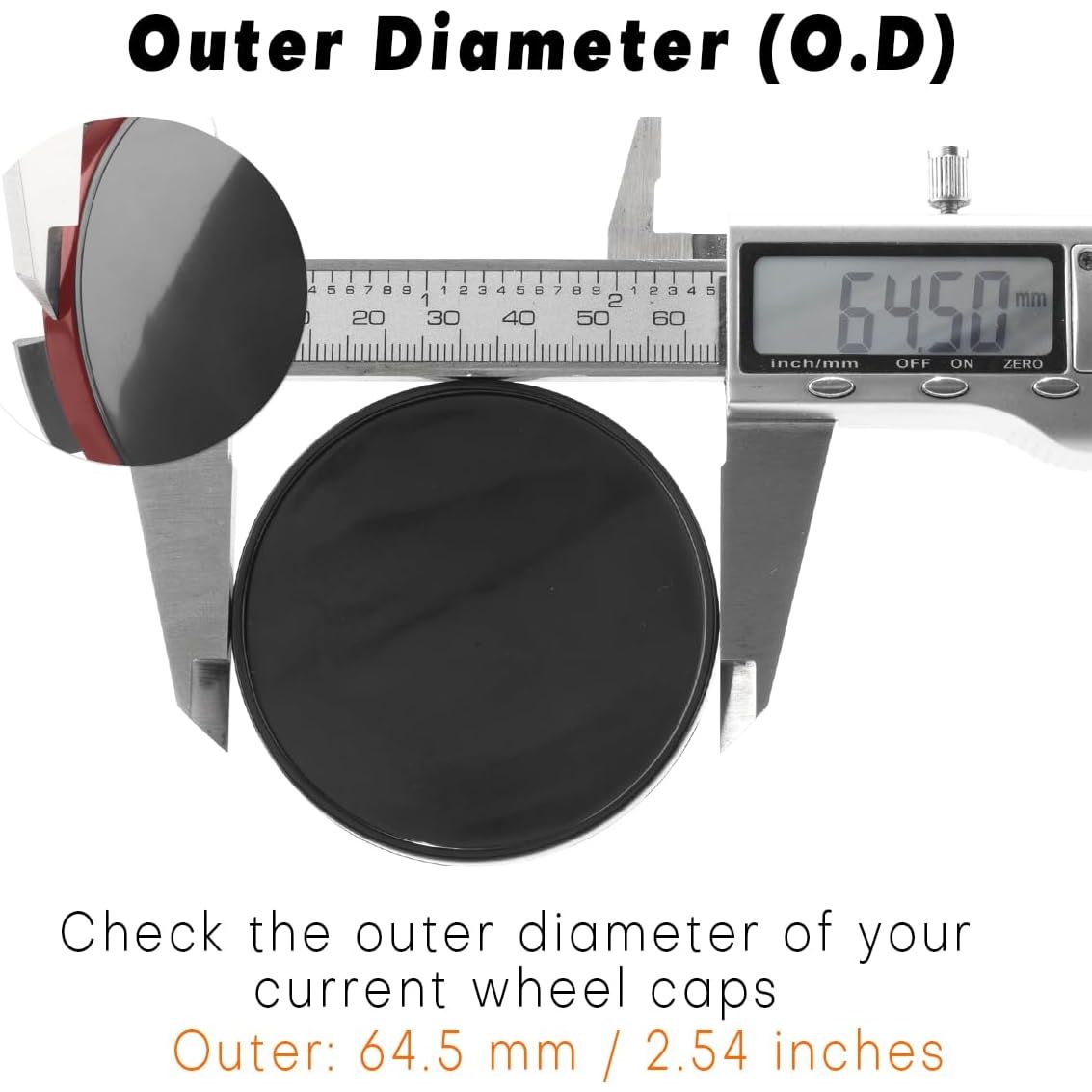 • Size: Outer Diameter:64.5mm /2.52in, Inner Diameter:58mm/2.28in,Clip Length: 3.4mm/0.13in, Total Height:14.5mm/0.57in. Please use a digital caliper to check your original cap dimensions if you are not sure. If you are not sure about the size, please feel free to contact us.