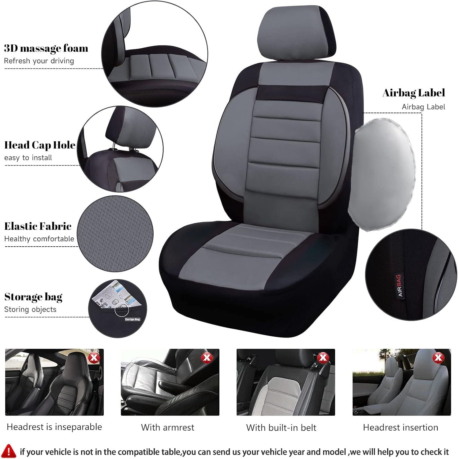 - Elegant turnkey solution for your vehicles. 6PCS Items Included£º2 front seats covers, 2 backrest covers,2 Separate headrest covers. Airbag Compatible: We have the exclusive patent about the blast of airbag for the seat covers in case of emergence.