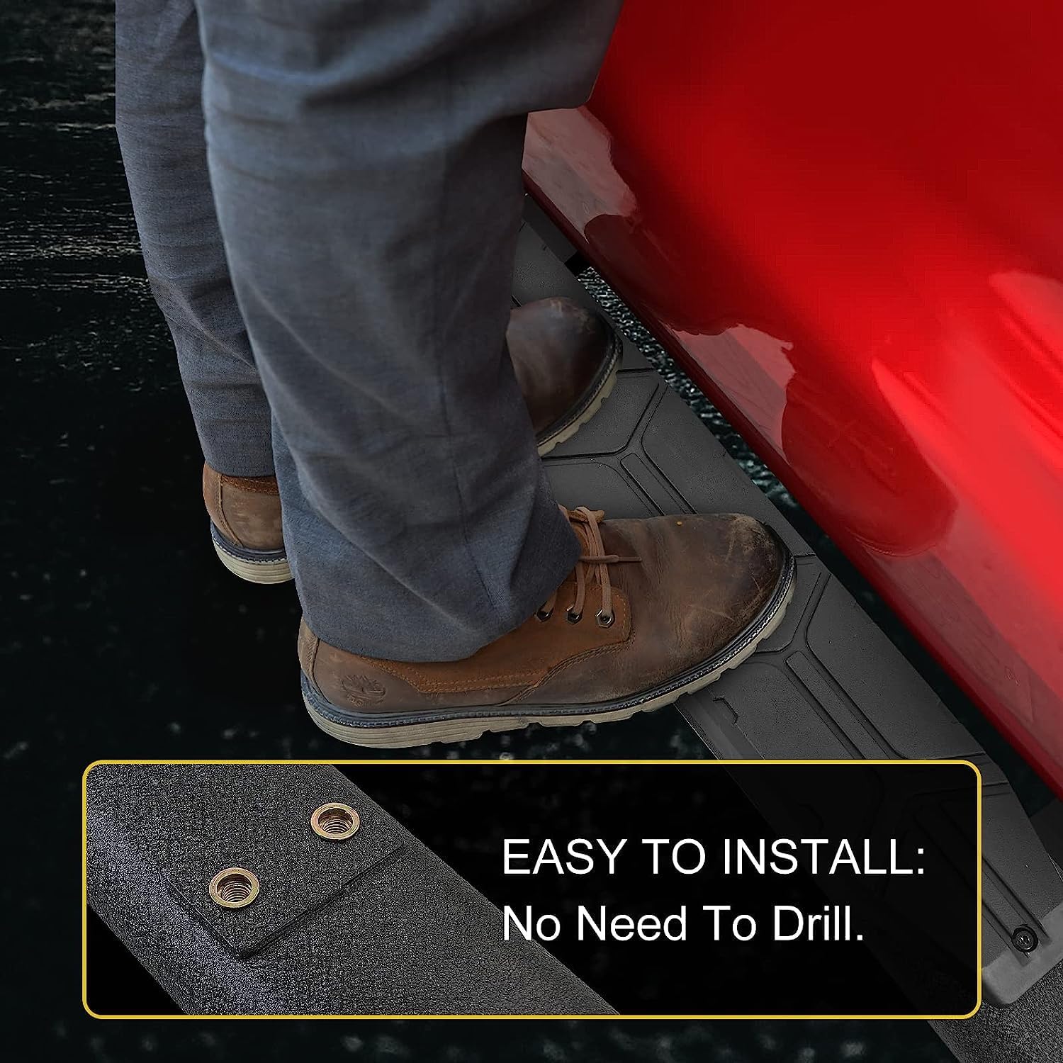 • EASY TO INSTALL: Non Welded Design Of Product, Just Mounted It, Direct Bolt On, No Need To Drill. The Items Include: 2 Running Board(left And Right), Brackets, Hardware, and Detailed Instructions.