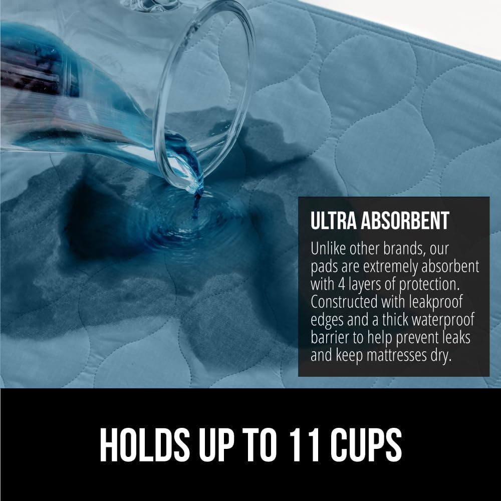 • LEAK PROOF PROTECTION: 1 pack; our pad can hold up to 8 cups of liquid, much more than others; moisture is quickly absorbed into the pad and then dispersed throughout, helping to prevent leakage; also features leak proof edges, resilient inner layers and a thick waterproof barrier to offer additional, unparalleled protection that will give you the comfort and security you need