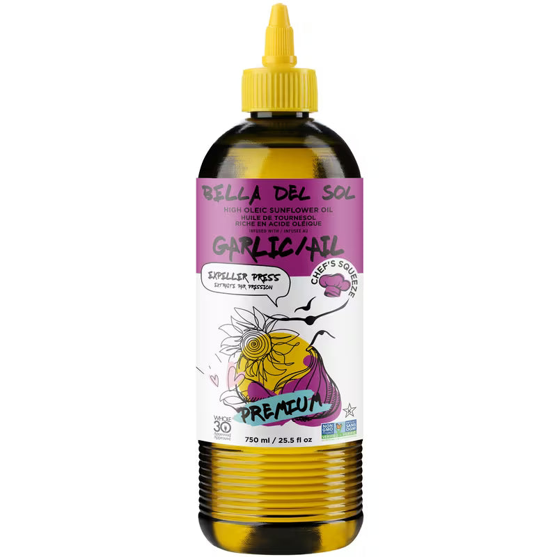 Bella Del Sol Premium High Oleic Sunflower Oil Infused with Garlic, 750 ml