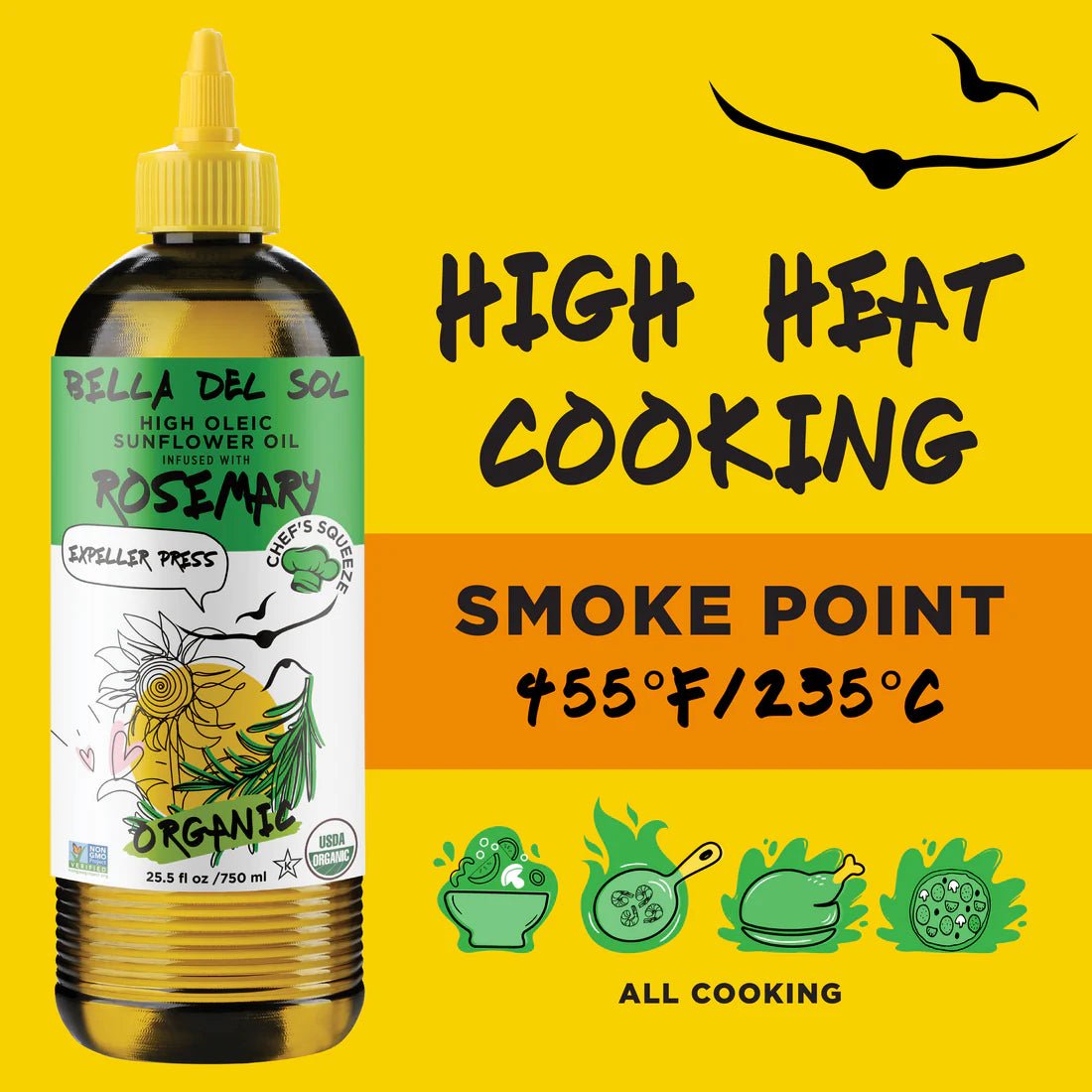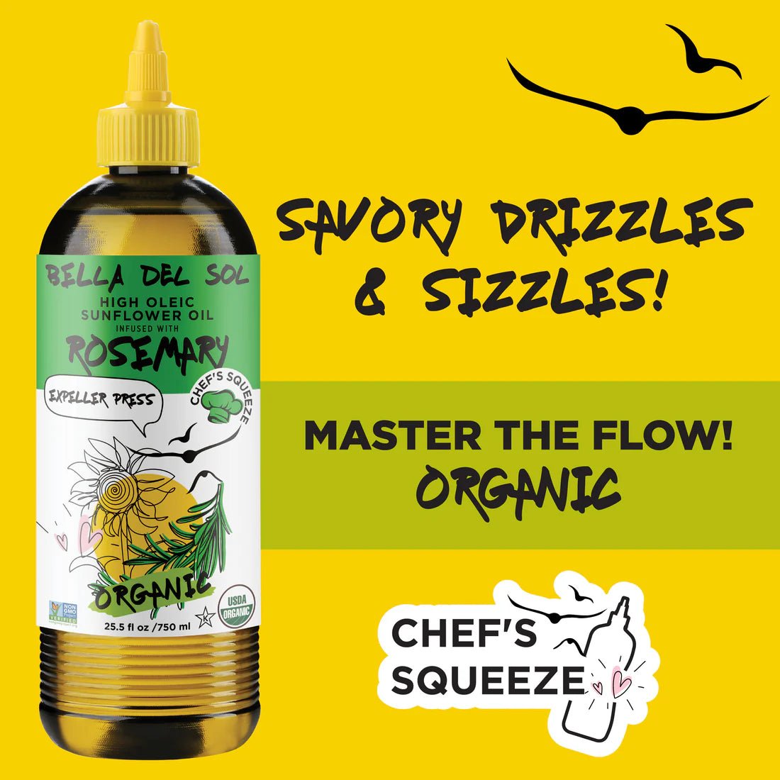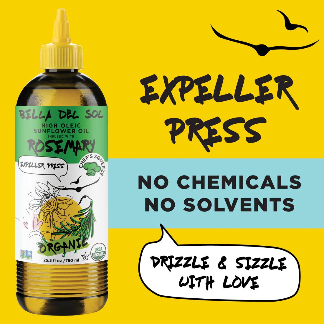 For those who appreciate the subtle yet distinctive flavors of herbs, Bella Del Sol’s rosemary-infused sunflower oil is your perfect kitchen companion. Our oil is expeller-pressed from organically grown seeds, ensuring all the heart-healthy benefits of high oleic acids without any chemical solvents.