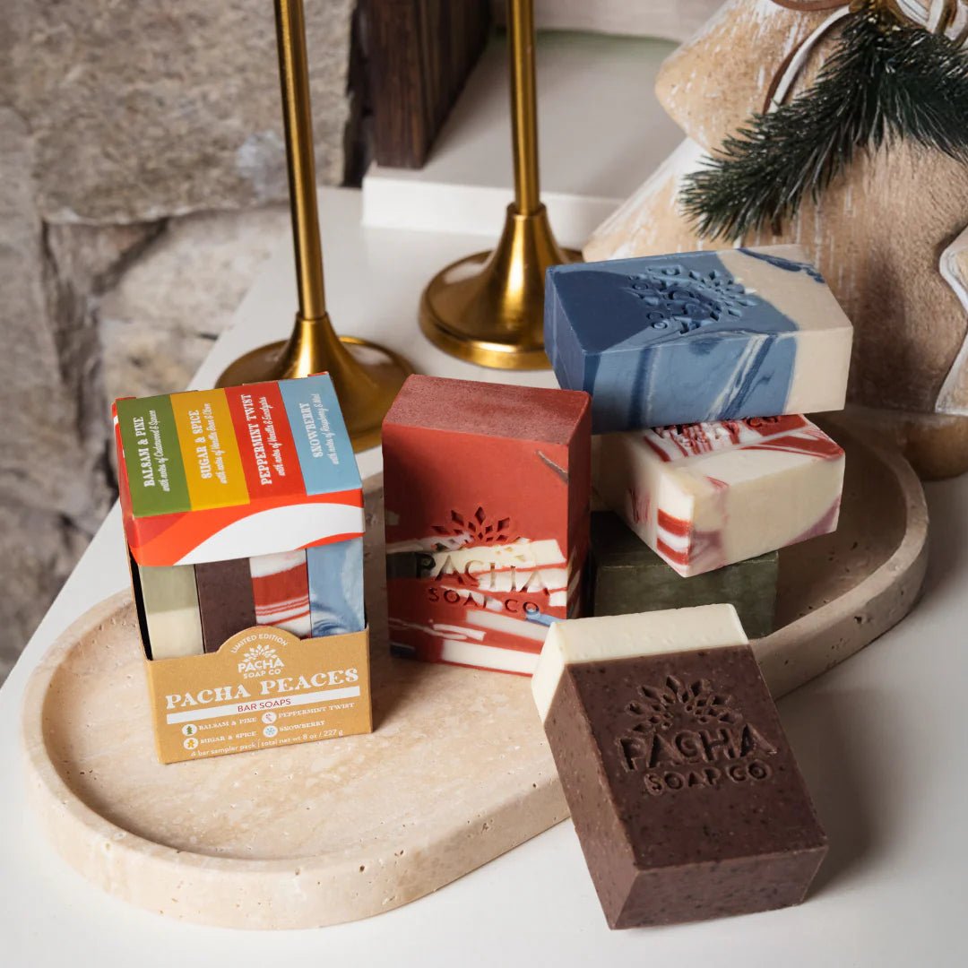 Cool peppermint, soothing vanilla, and refreshing eucalyptus create a festive favorite. This handcrafted bar delivers a rich lather and skin-softening oils, making every wash feel merry and bright.