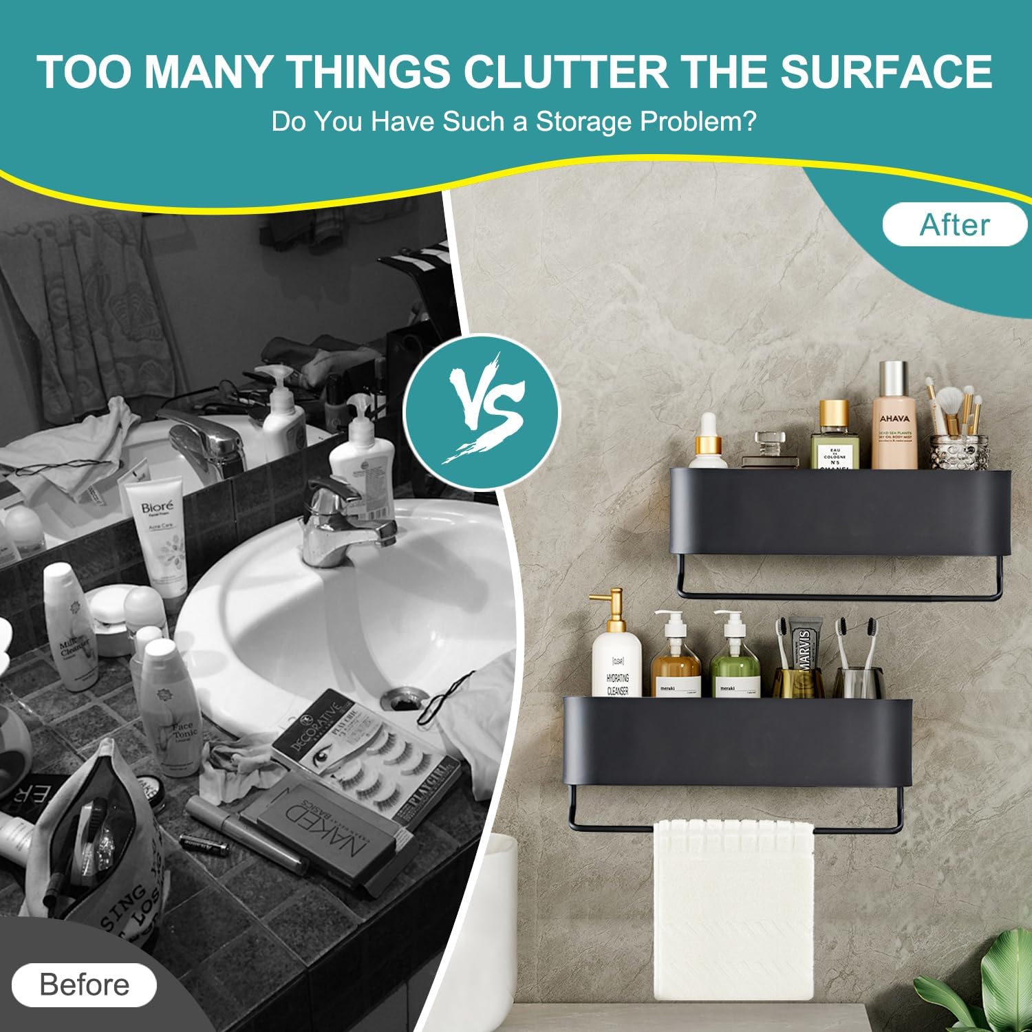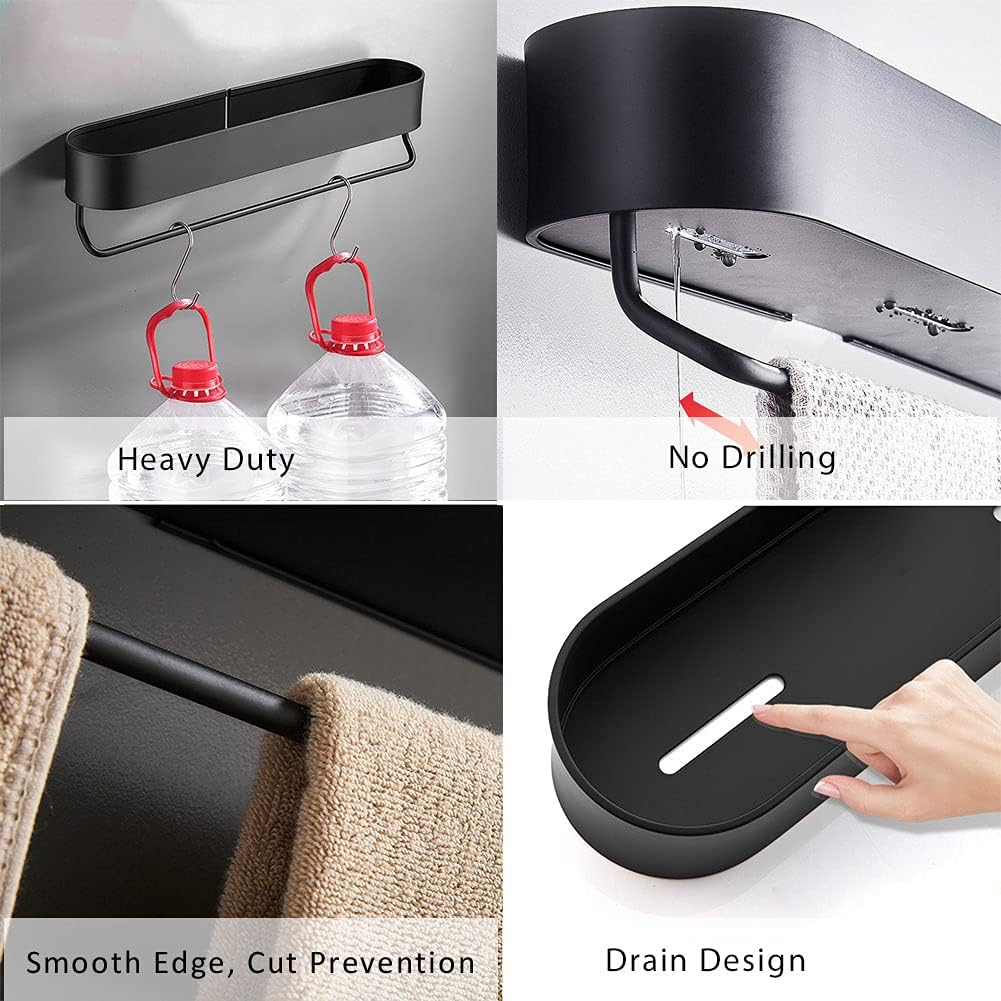 Bathroom Shelf No Drilling Shower Shelf with Towel Rail Bar Bathroom Shelves for Towels Rustproof Aluminum Shower Organizer Wall Mounted for Kitchen,Living Room (BK - 30cm) - Just Closeouts Canada Inc.