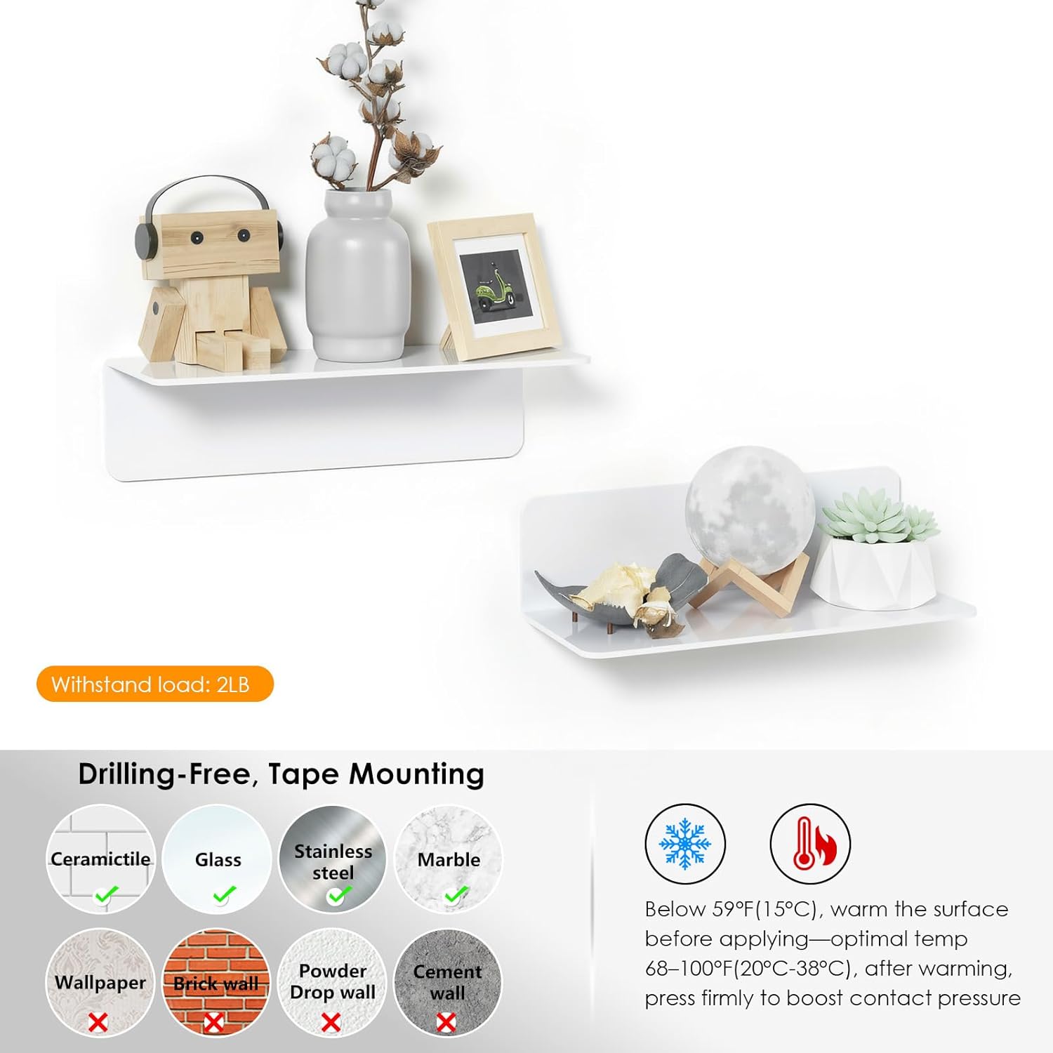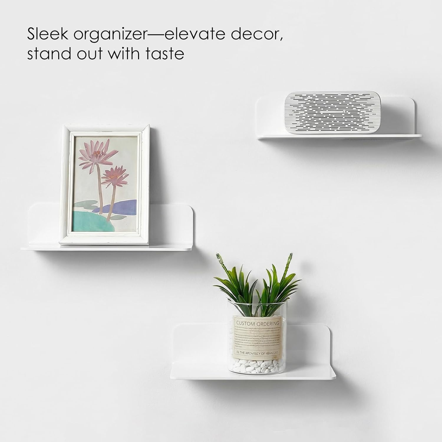 - PROFESSIONAL QUALITY: The white floating shelves are made of high-quality acrylic with sturdy double-sided tape that is very reliable to hold up to 8 pounds.