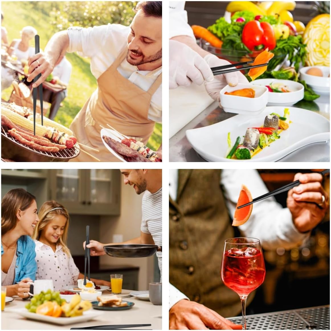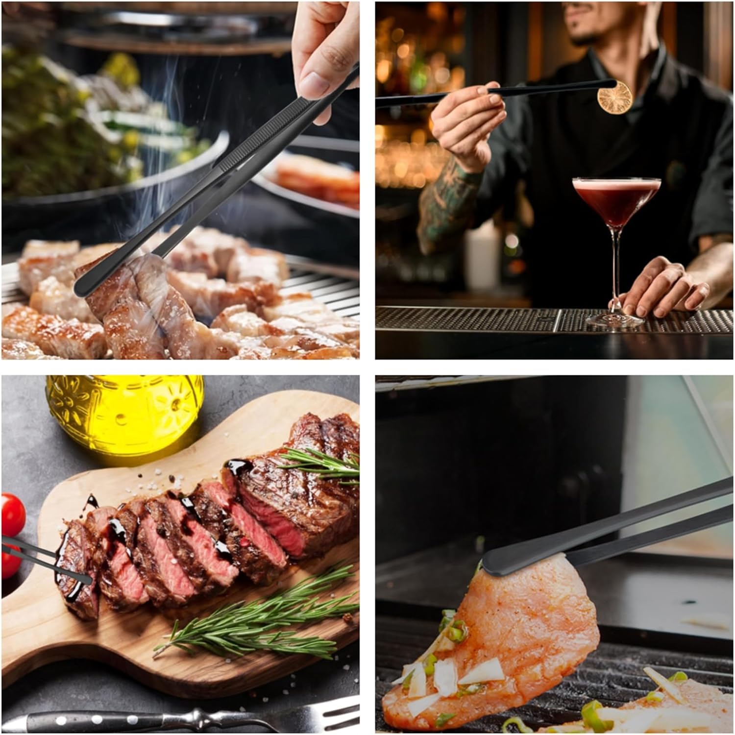 - Multi-functional use: Our cooking tweezers are ideal kitchen AIDS. Due to their straight head design and simple operation, they are also suitable for precise tasks such as cooking, decorating plates, and taking small snacks out of packaging or bottles. It can also be used to prepare steaks, ribs, fried pork chops, sausages, fish, vegetables, hot pot or grilled meat.