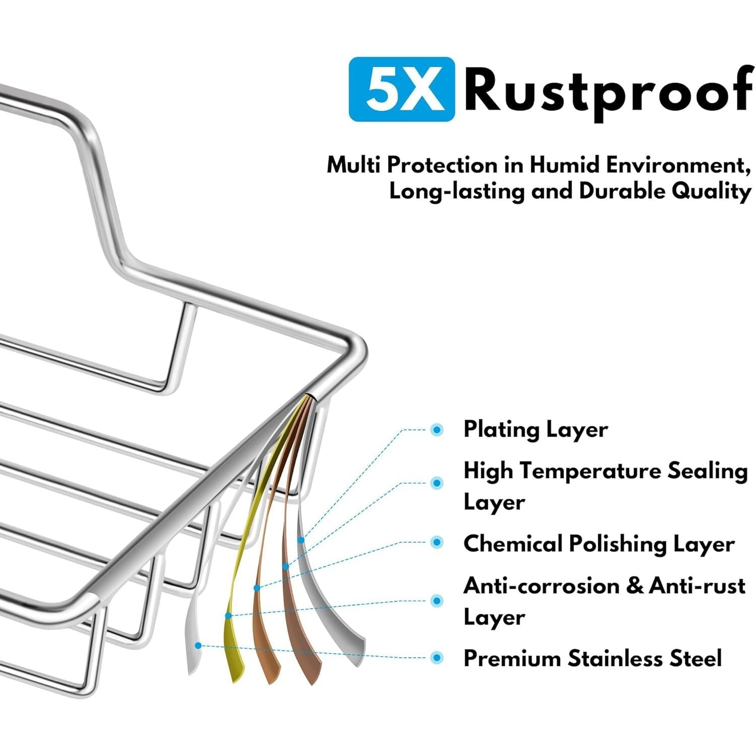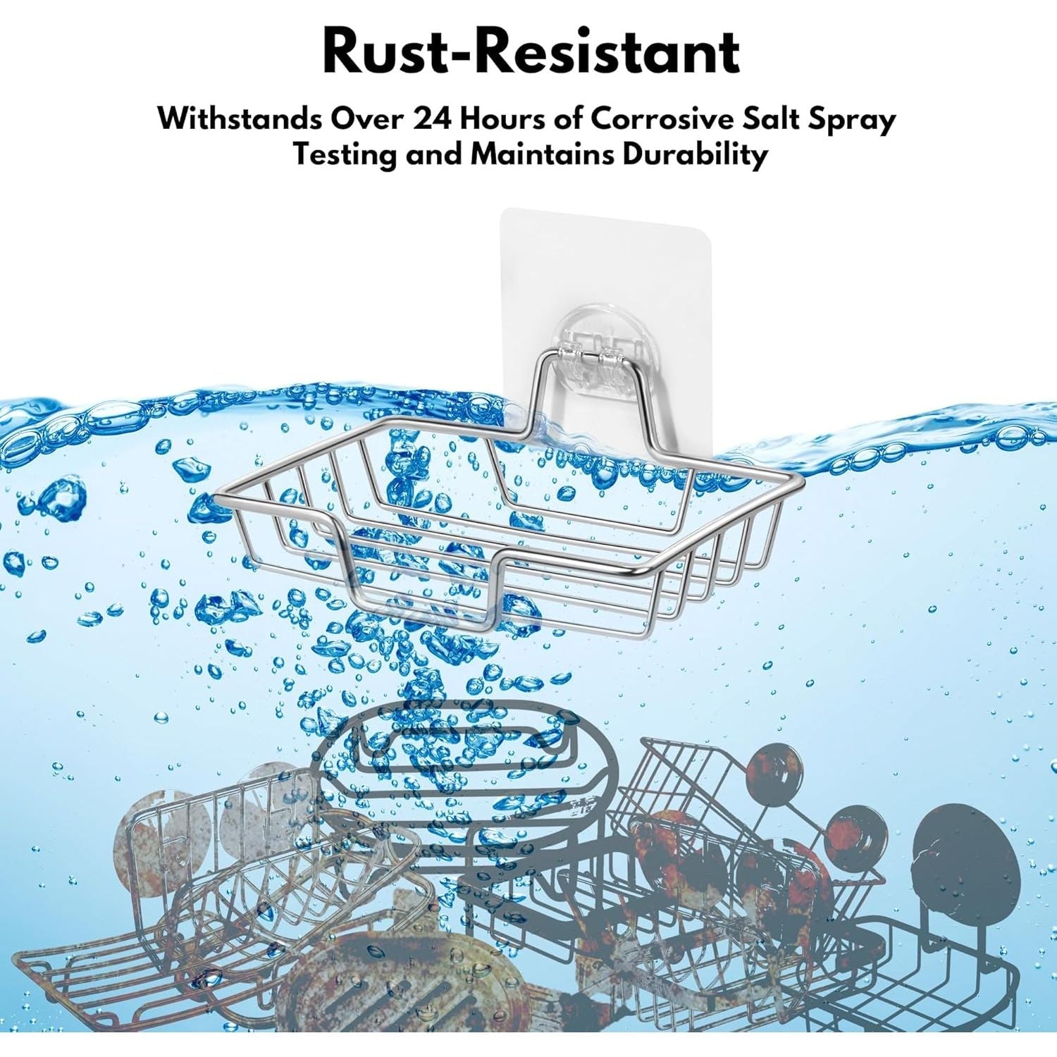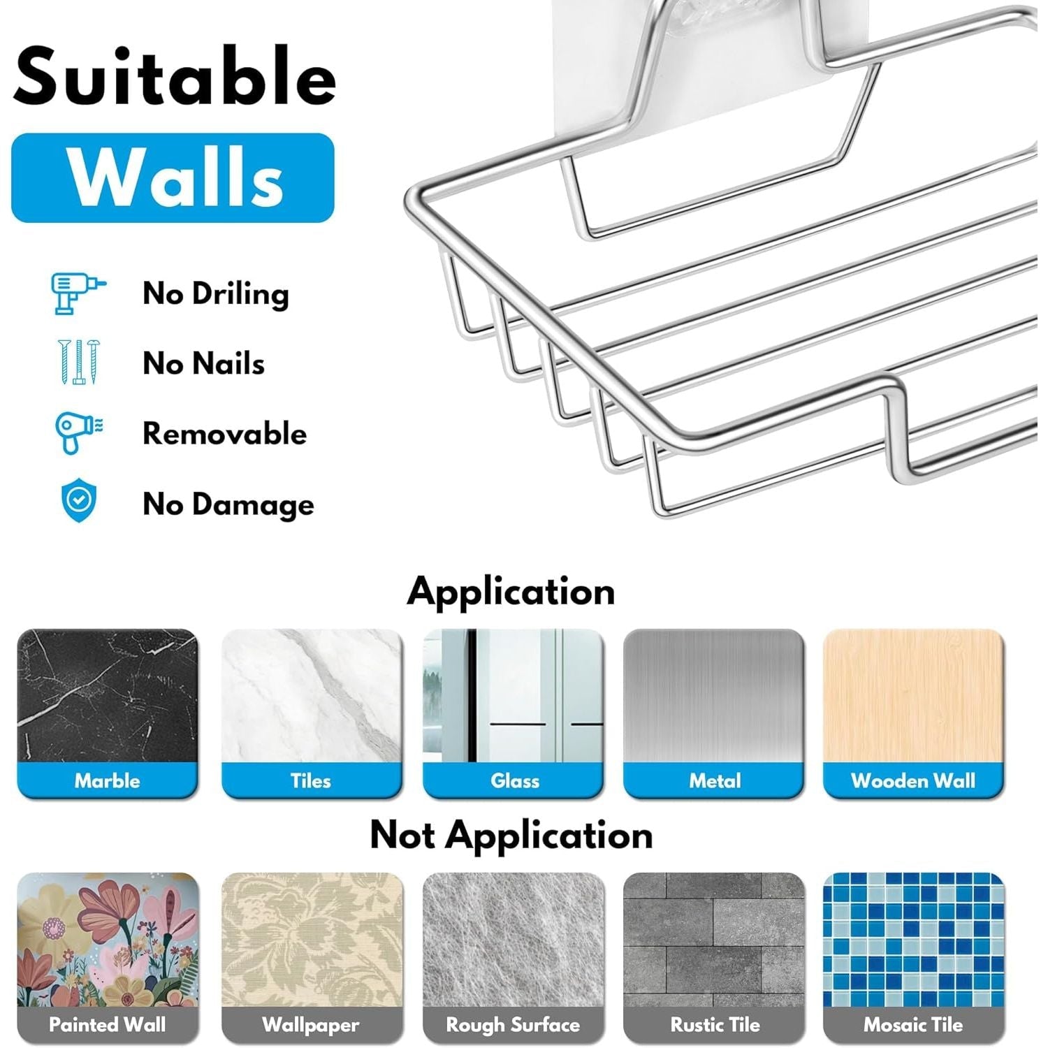 Soap Dish Holder, No Drilling, 304 Rustproof Stainless Steel, Wall Mounted Soap Holder Soap Tray Bar Soap Sponge Holder for Bathroom & Kitchen, Square, Silver - Just Closeouts Canada Inc.