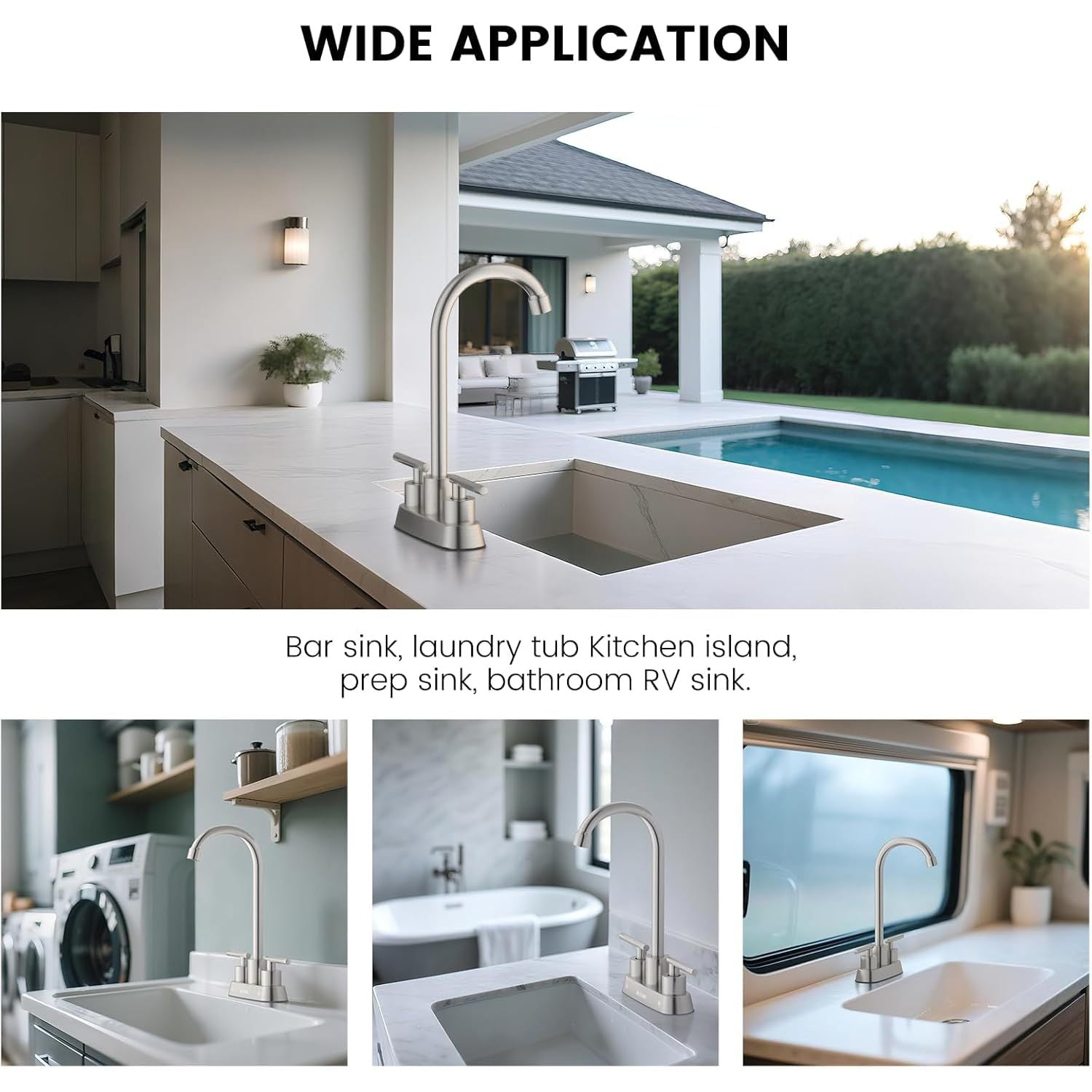 - STANDARD 4-INCH DECK MOUNT DESIGN: This 2 hole bar sink faucet is engineered with a 4-inch center set configuration for seamless compatibility with most sinks. The 30cm high-arch spout provides ample clearance for large pots and pans