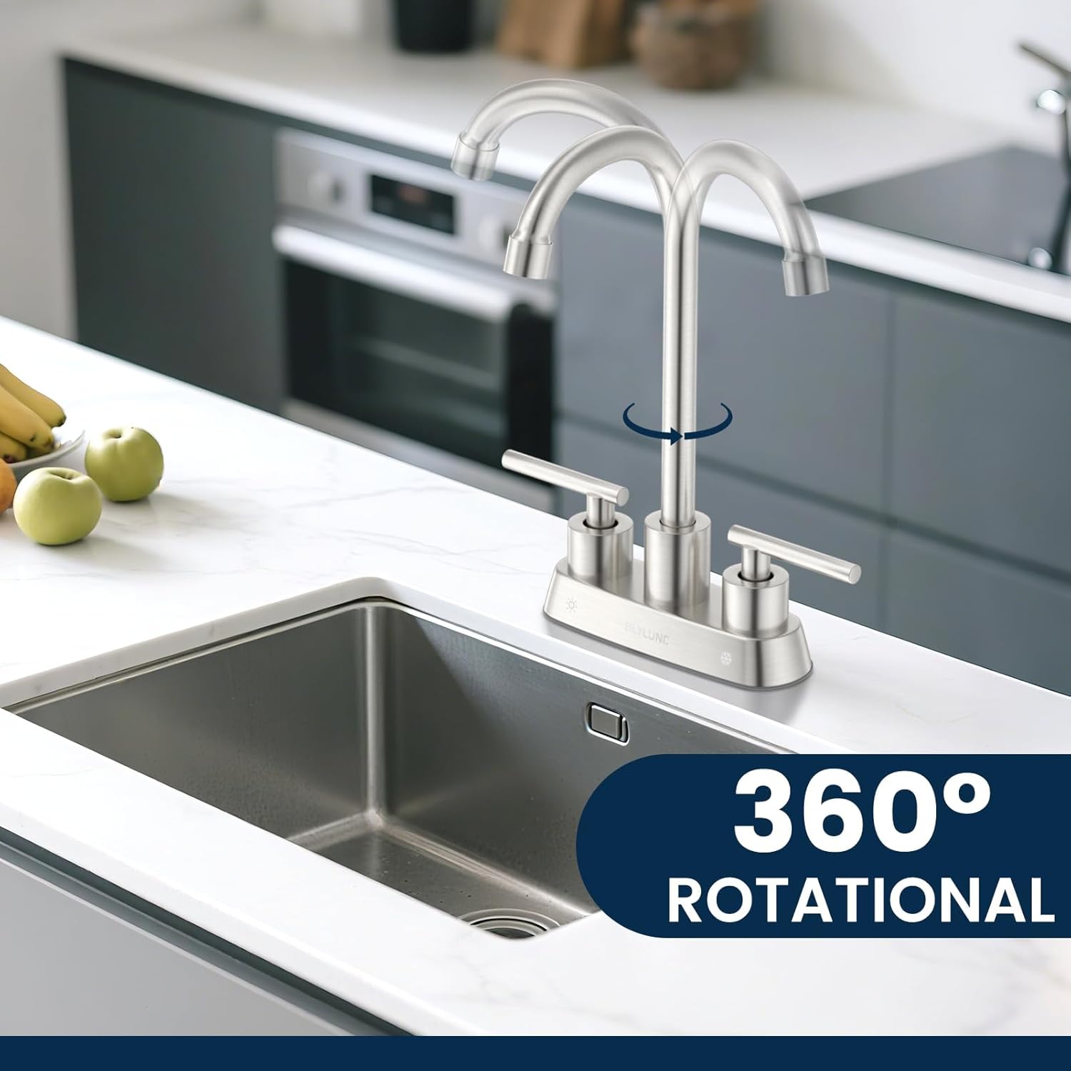 - CONVENIENCE FOR USING: The 360° full swivel spout design of the sink faucet provides more convenience for daily use. The premium aerator provides a gentle washing experience and prevents splashing, plus the user-friendly double handle design ensures easy and precise temperature and flow control