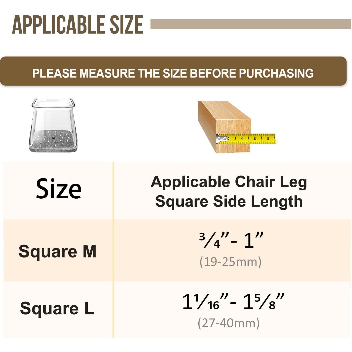 - Applicable size:Suitable for chair foot Square side length 3/4" ~ 1" (19mm-25mm)