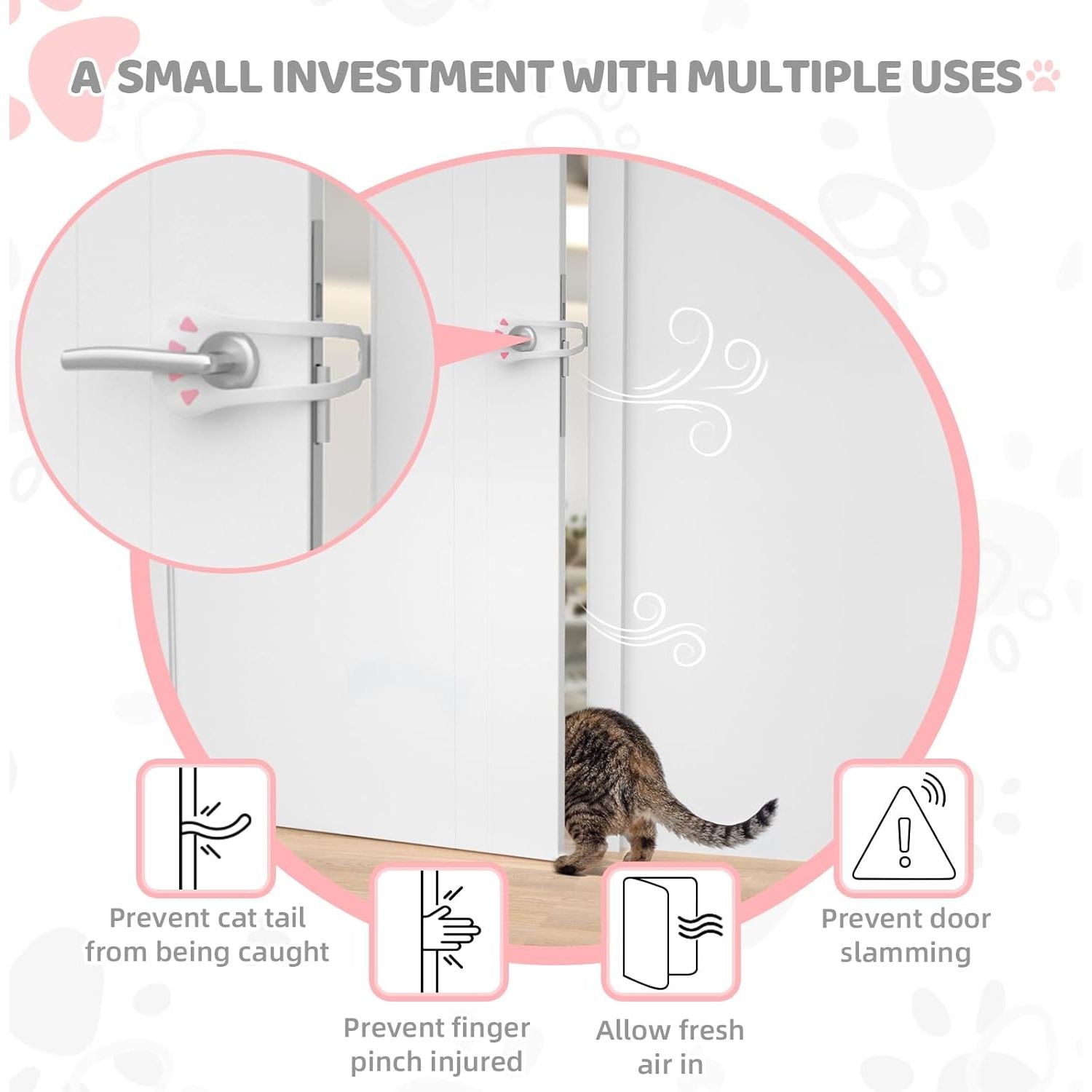 - Safe and Convenient Access for Cats: A cat door stopper can keep your door in a partially open position, so that your cats can avoid being accidentally trapped in or out of a room which may lead to potential accidents. Giving them freedom to explore outdoors or move between rooms without relying on you to open the door every time. The cat door latch not only provides a convenient and secure entryway for your furry friends, but also maintains a peaceful and controlled environment for them.