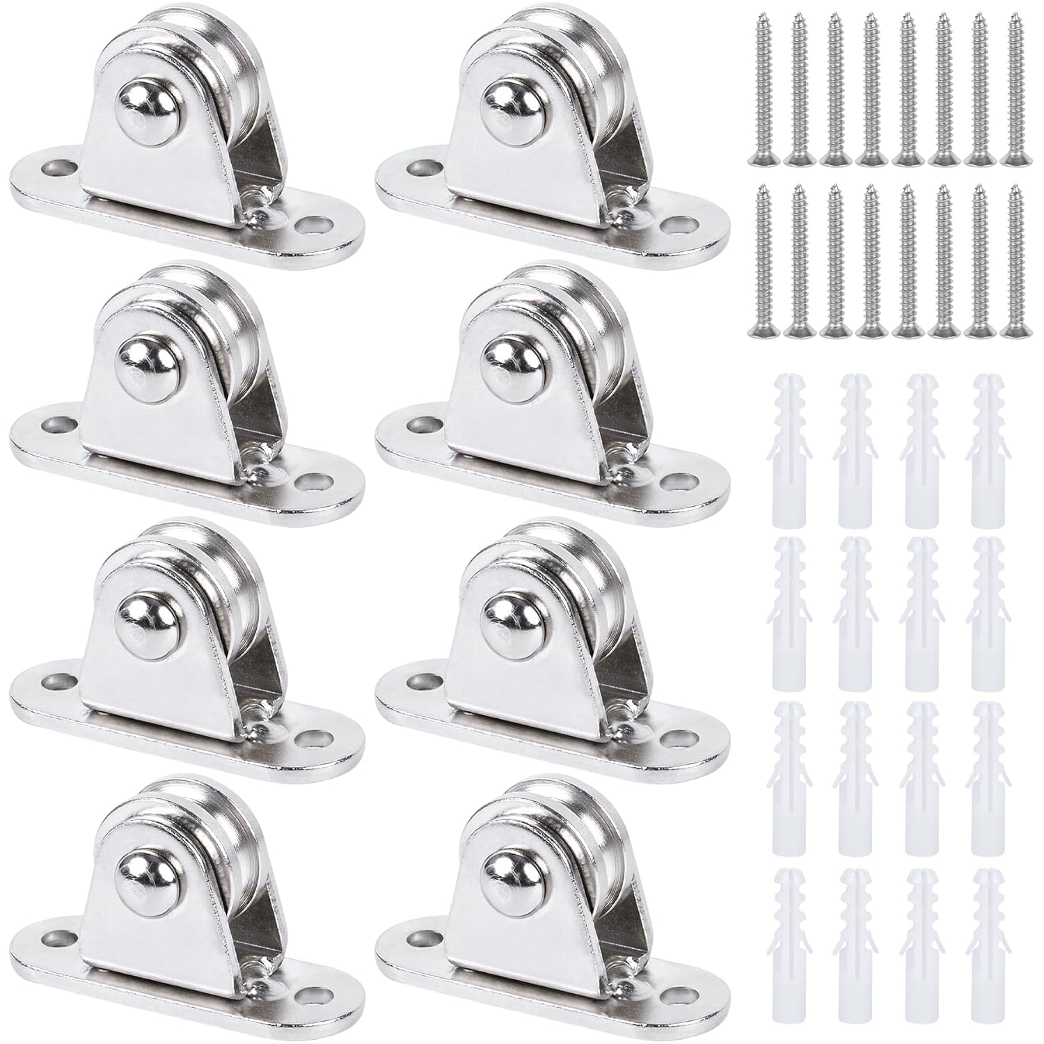 【What You Get】 You will get 8 packs of Pulley Block, which are made of quality carbon steel and nickel plated on surface . Also equipped with 16 pcs applicable expansion pipes and 16 pcs corrosion resistant self-tapping screws. All dimensions are measured manually, please allow 1-3mm differences