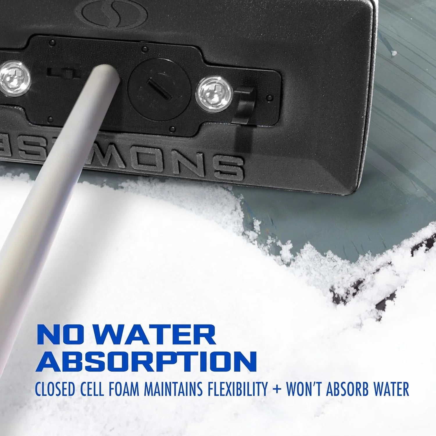 [18 in. L x 7 in. W]: non-abrasive foam head pushes heavy, wet snow off vehicles without damaging paint, trim, or glass