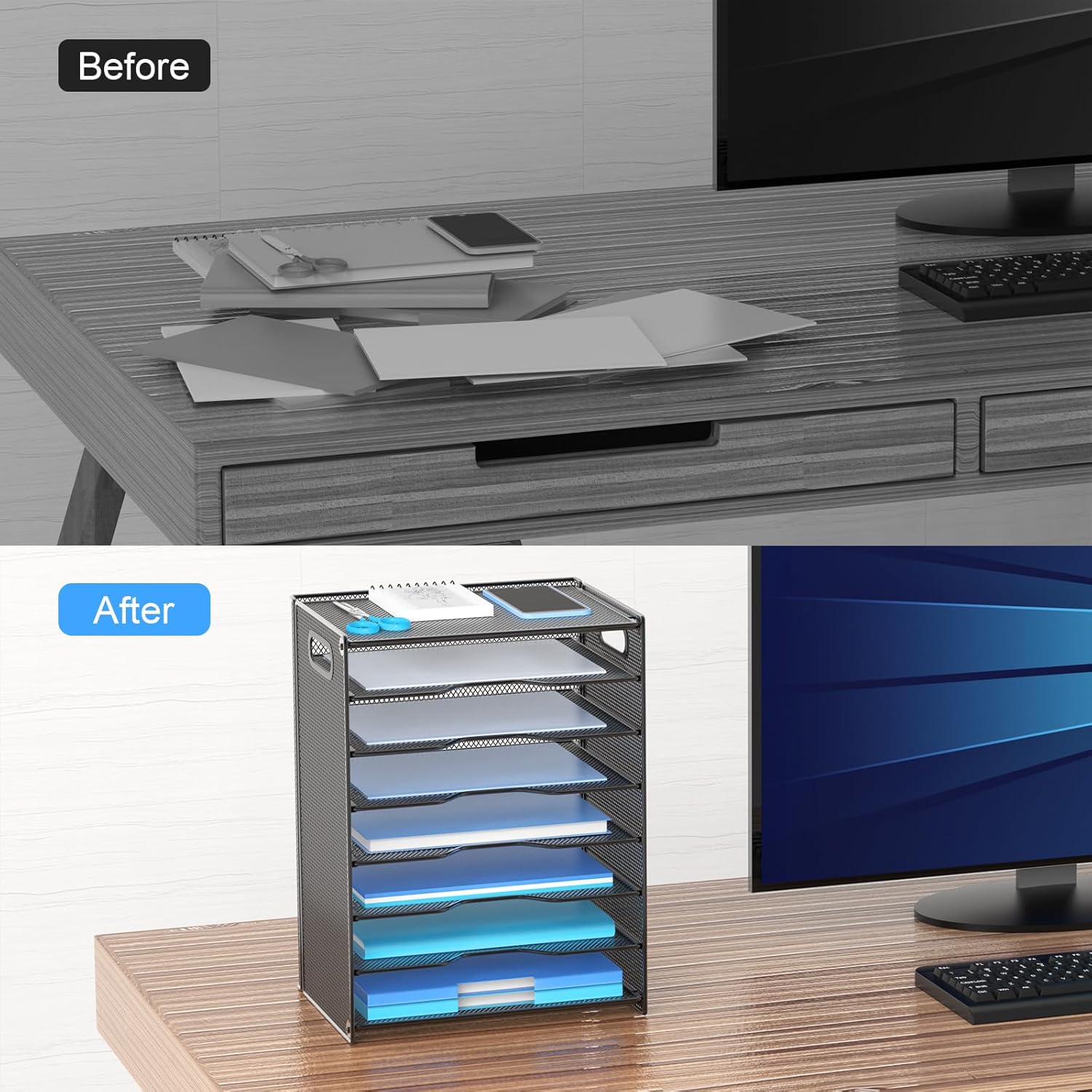 • [8 Tier Paper Organizer]: Our desk organizer has a large capacity for all your office supplies and desk accessories. The desktop organizer is designed to keep everything you need within reach, allowing you to increase your productivity.