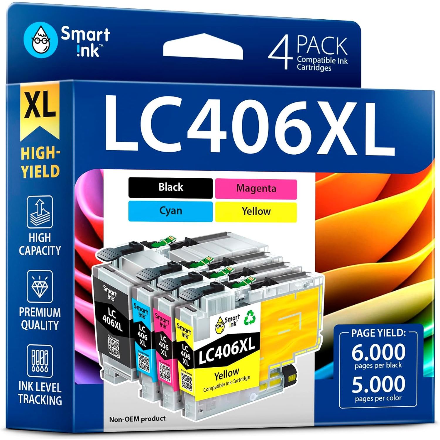 - Ink Level Tracking: Smart Ink LC406XL cartridges come with a built-in chip that monitors current ink levels, ensuring you reorder in time to avoid unexpected printing interruptions
