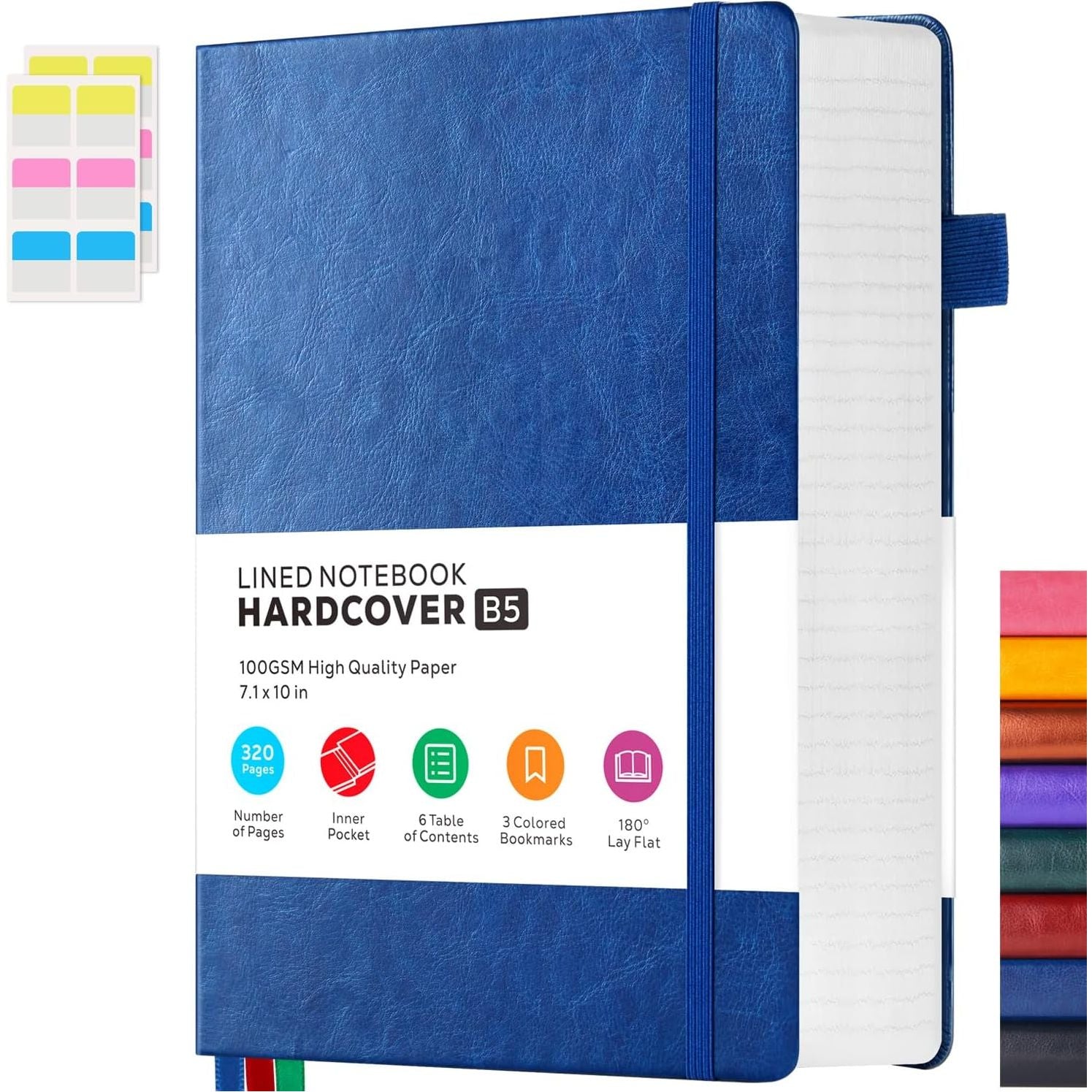 - 【320 Pages Hardcover Thick Notebook】This large B5 (7.1'' X 10'') size lined notebook journal has a total of 320 pages (including 6 catalog pages), 7mm space classic college ruled notebook, providing you with plenty of writing space. The notebook is made of 100gsm ivory thick paper, the paper is smooth, the writing is smooth, and the ink will not bleed, suitable for most pens.