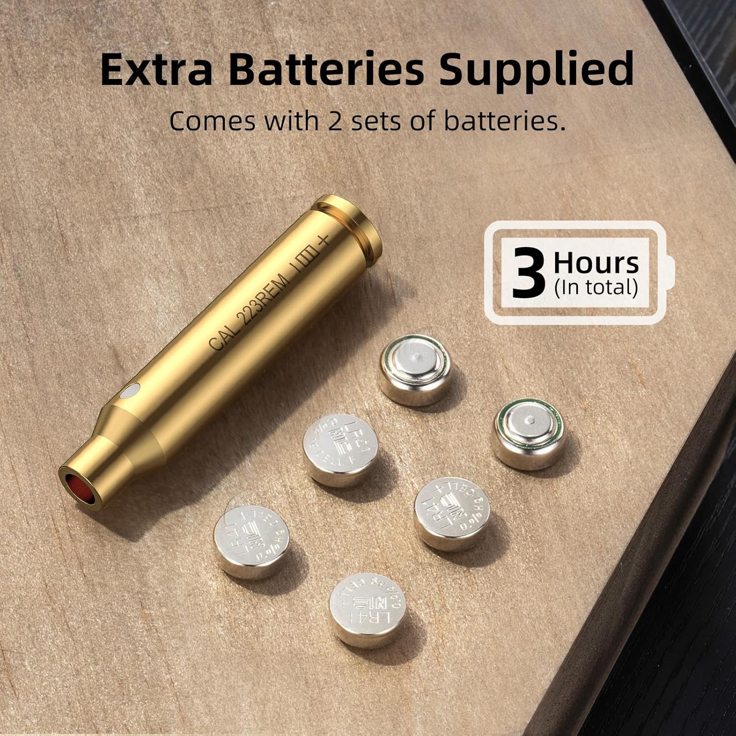 • 【Extra Batteries】Comes with 2 sets of batteries (6 pcs in total). Red laser 223 bore sight will last up to 1 hour with one set of battery, enough to complete the sighting work.
