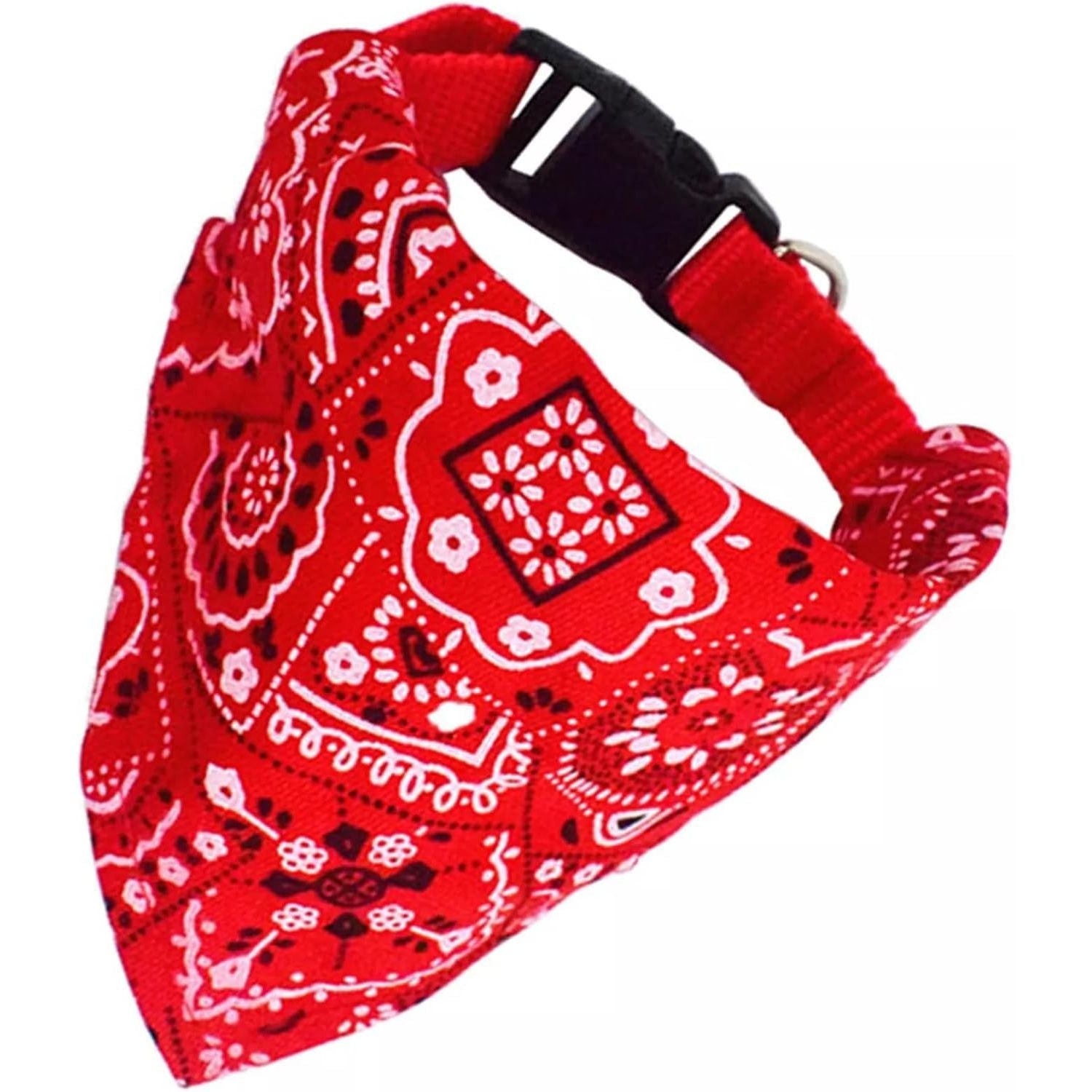 - 【Excellent Material】: Thick nylon collar with plastic buckle and metal D-ring, polyester headscarf, safe and comfortable to wear.The simple and fashionable floral pattern on the scarf makes your dog look more cute and fashionable.