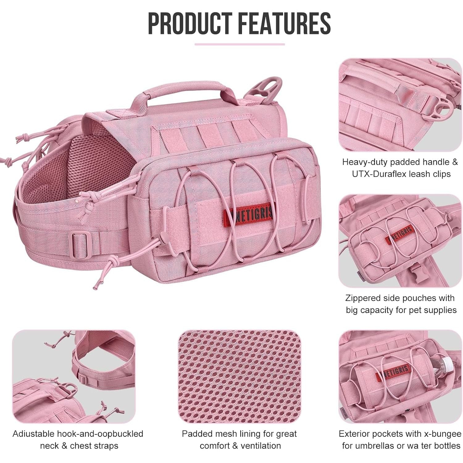 Backpack for Dogs to Wear Pet Back Pack with Padded Handle and Leash Attachment Point for Dog with 17" - 23.5" Neck Girth and 25" - 31" Chest (Pink, Medium) - Just Closeouts Canada Inc.