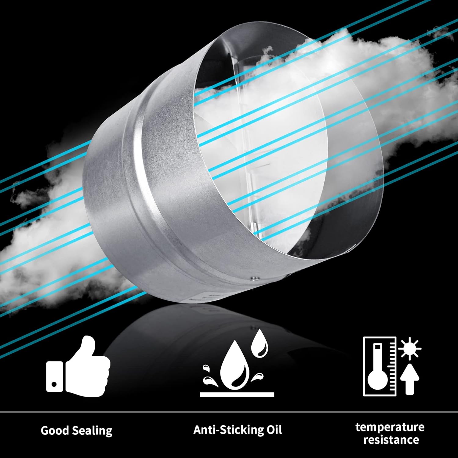 • 【Practical Features】The air duct choke prevents cold air or wind from entering the ventilation duct. The backflow flap opens and closes automatically at low air volumes. The valve is equipped with a smooth-running spring and a rubber gasket that create an airtight seal and grip between the damper and ducts
