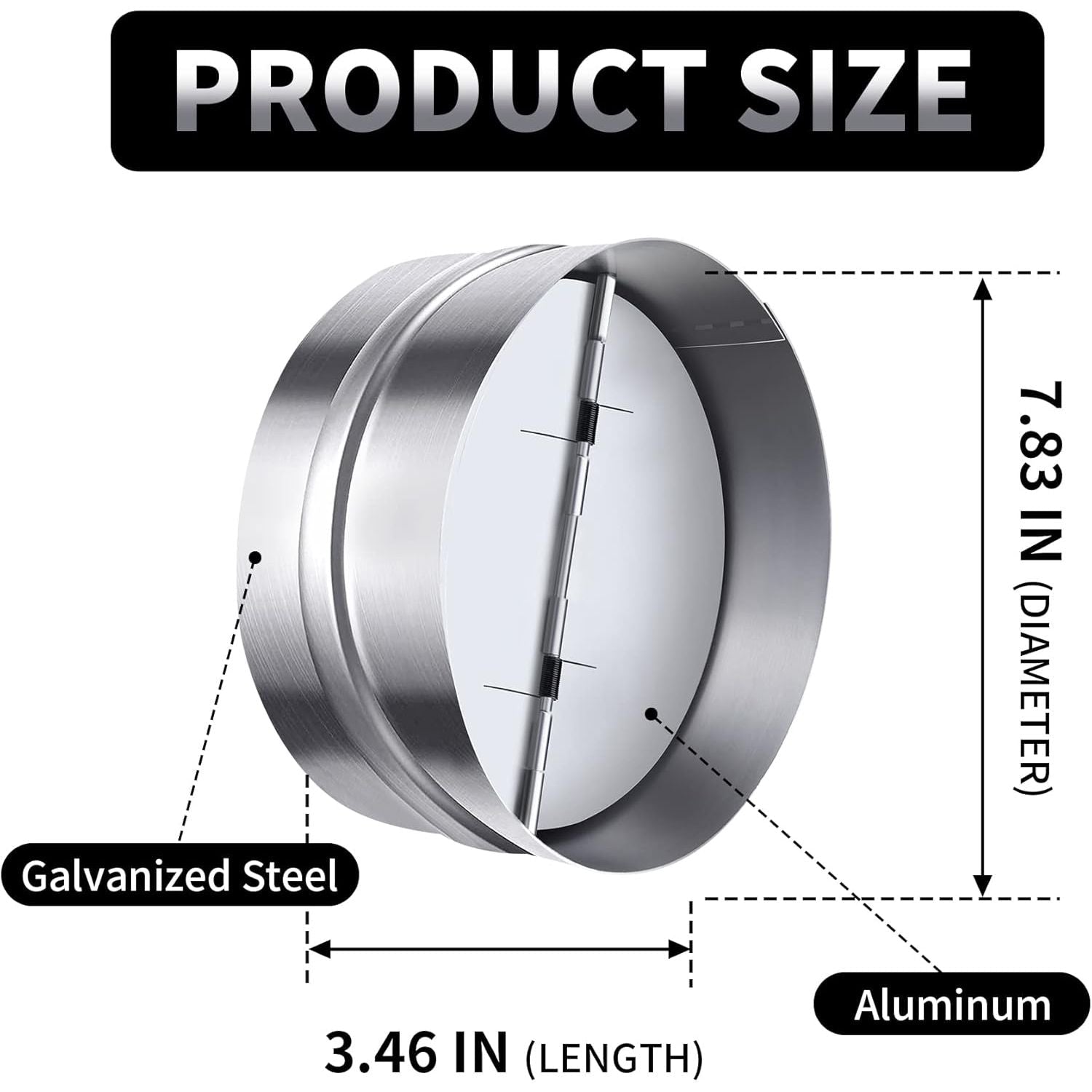 8 Inch Backdraft Damper Back Draft Vent Duct Shutter Blocker, Backflow Ducting Insert One - Way Airflow Preventer with Inline Springs Loaded Folding Blades, HVAC Extractor Range Fan Hood Deflector - Just Closeouts Canada Inc.