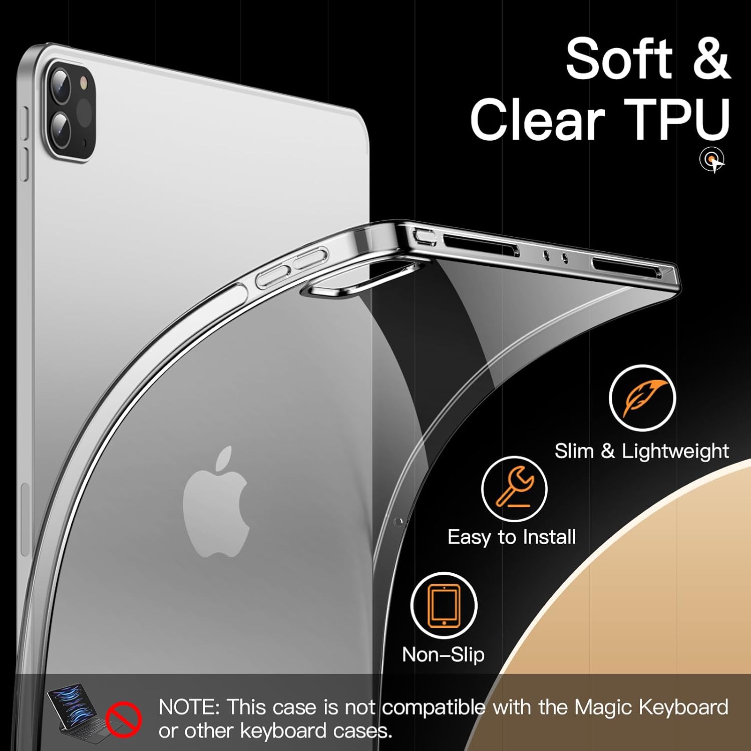 Case for iPad Pro 11-Inch 2022/2021/2020 Model (4th/3rd/2nd Generation), Soft TPU Transparent Slim Shockproof Tablet Cover, Support Pencil 2nd Charging (Clear)