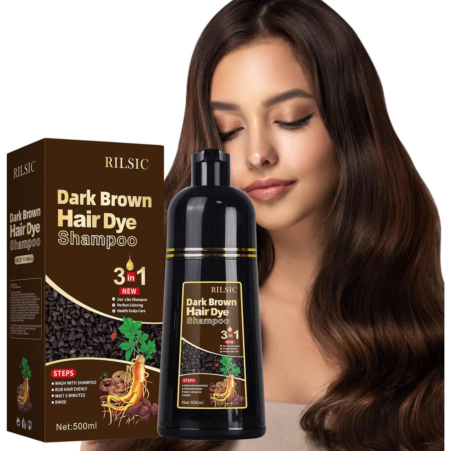 Black Hair Dye Shampoo for Grey Hair Beard Coverage, 500ML Instant Hair Colour Shampoo 3 in 1, Hair Color & Long Lasting Hair Colouring Shampoos for Women Men, Black Hair Dye Coloring in Minutes (Dark Brown) - Just Closeouts Canada Inc.X004RPK35R