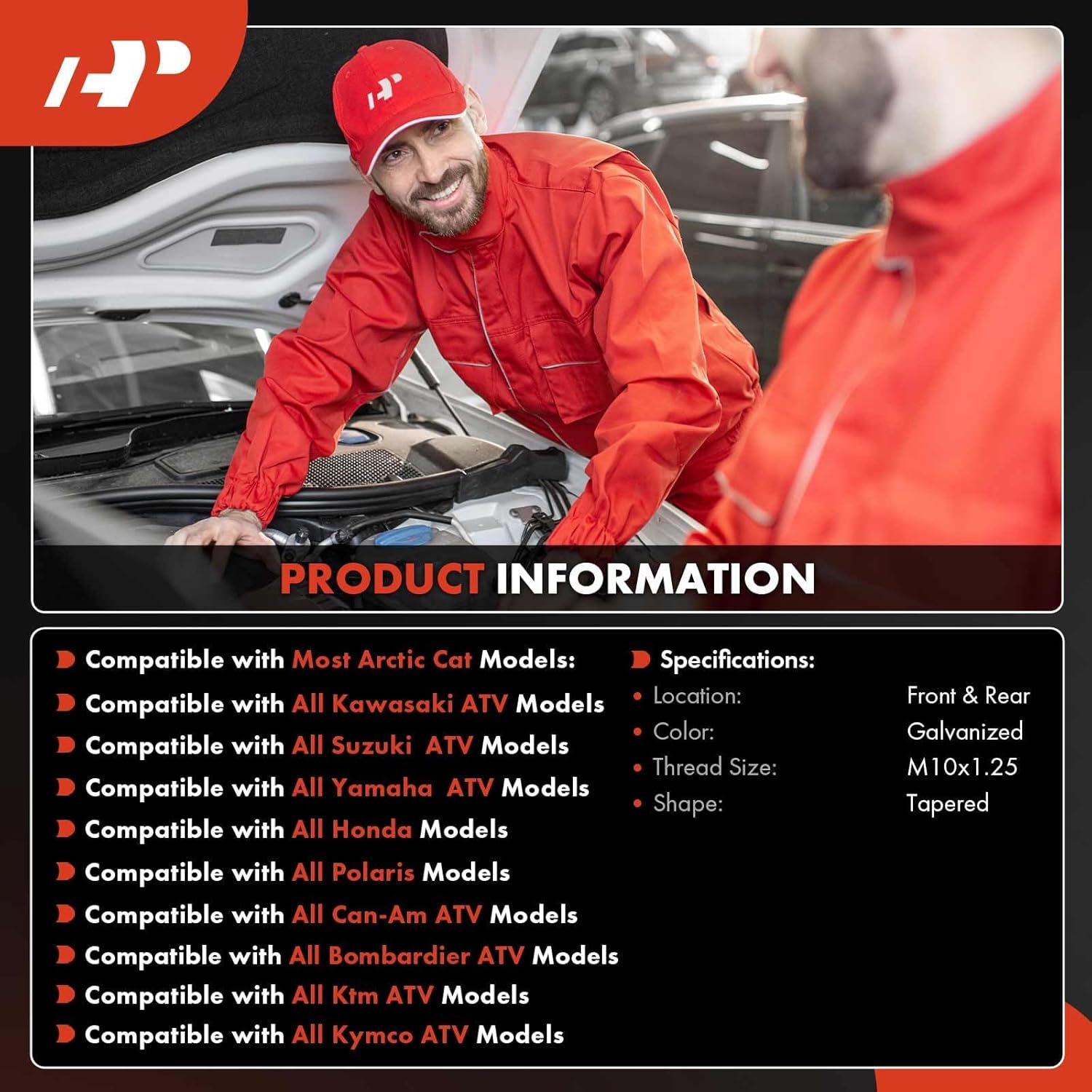 A - Premium (16 - PC) M10 x 1.25 Wheel Lug Nut Compatible with Arctic Cat, Can - Am, Kawasaki, Suzuki, Yamaha (Not YXZ 1000R), Honda, Polaris, Bombardier, KTM & Kymco ATV Models, Front & Rear - Just Closeouts Canada Inc.