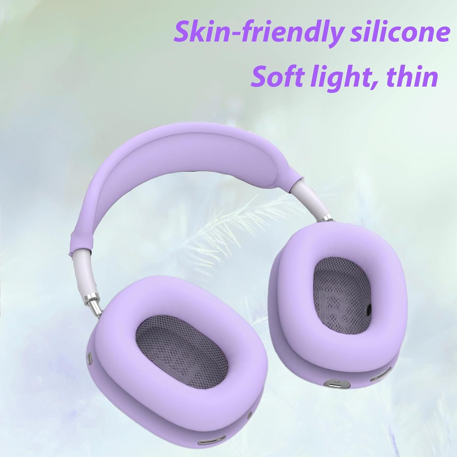 3 in 1 Silicone Case Cover for AirPods Max Headphones, Anti-Scratch Ear Pad/Ear Cups/Headband Cover for AirPod Max, Accessories Silicone Protector for Apple AirPods Max (Purple)