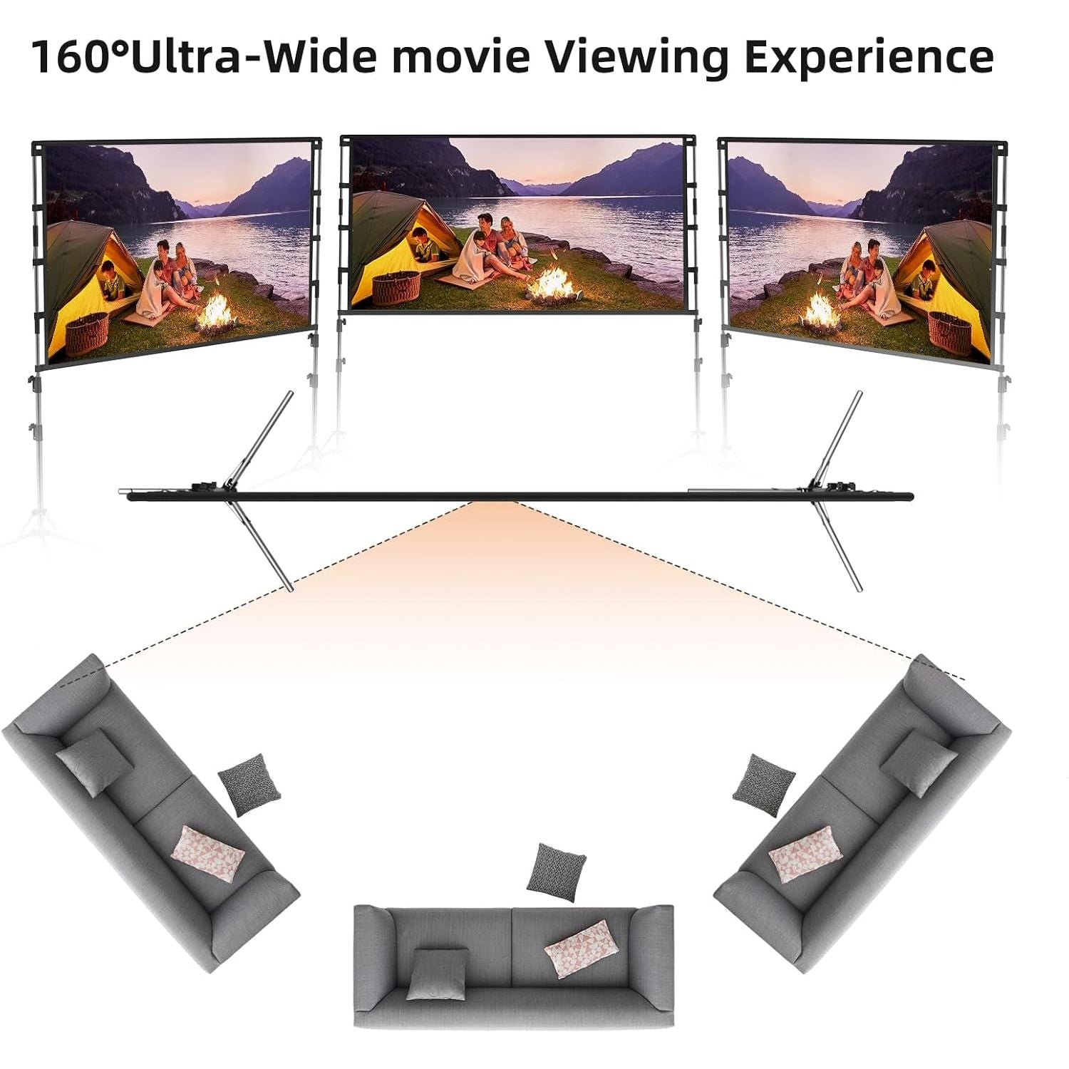 - Wrinkle-Free Movie Screen: 100 inch projector screen, 16:9 format,160° Wide Viewing Angle. screen for projector is made of polyester milk silk, thicker than other ordinary screens. but not see through.The movie projector screen is foldable, washable and soft, so it is very easy to clean from stains.Thick and Wrinkle-Free design giving you more fun, even support FRONT and REAR projection.