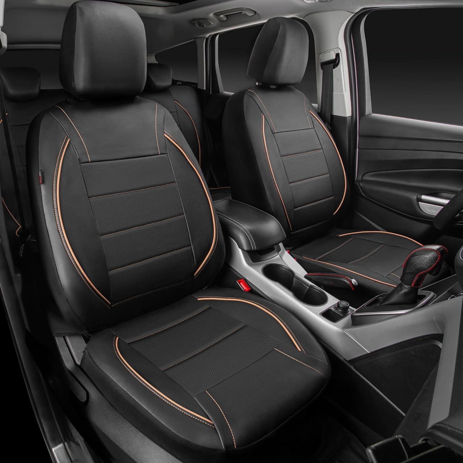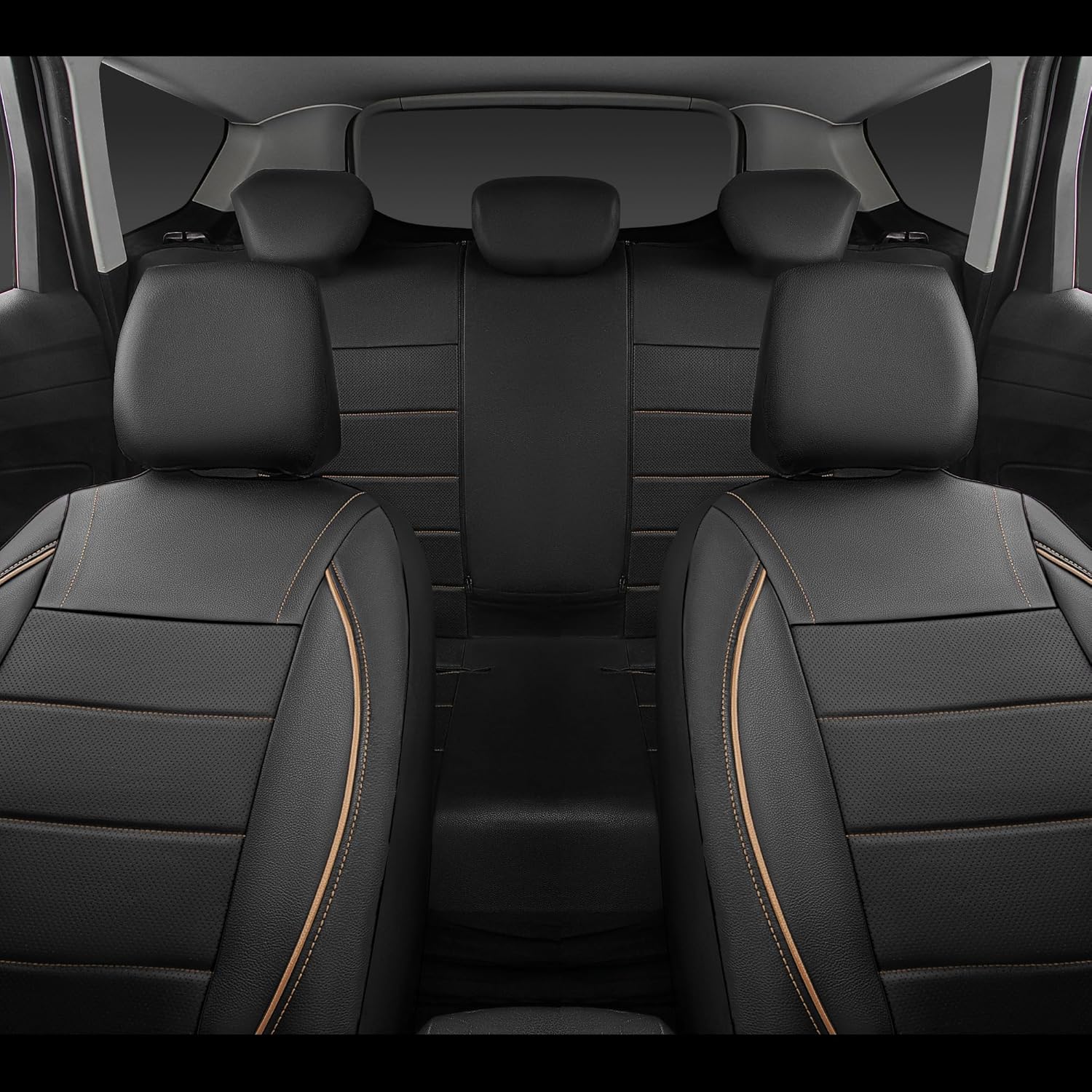 Universal FIT Piping Leather Car Seat Cover, for suvs,Van,Trucks,Airbag Compatible,Inside Zipper Design and Reserved Opening Holes (Full seat Covers, Black and Beige) - Just Closeouts Canada Inc.