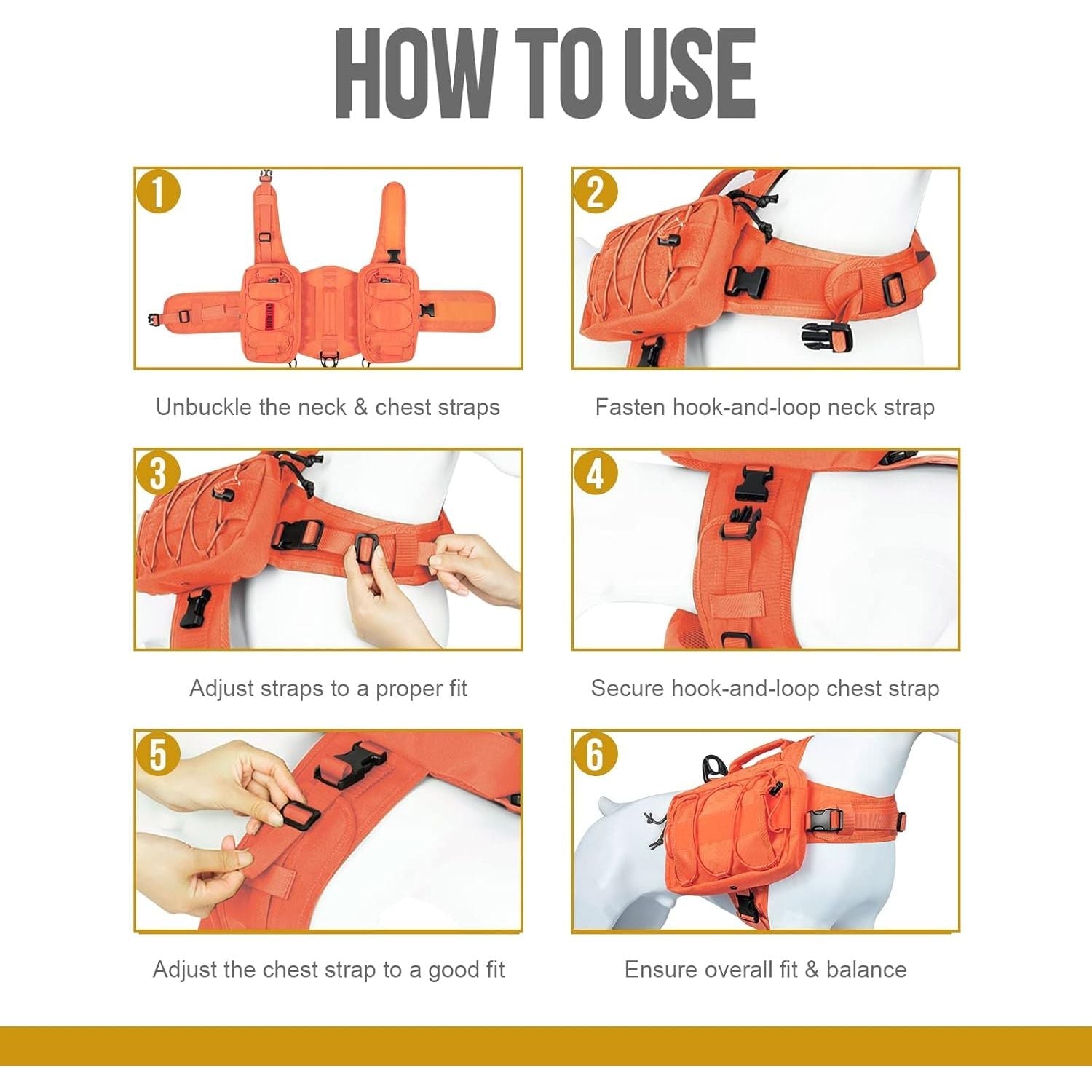 • Adjustable Dog Harness Backpack: Hook-and-loop belly strap with UTX-Duraflex buckles so the pack stays in place and wrap dog's neck & belly around well