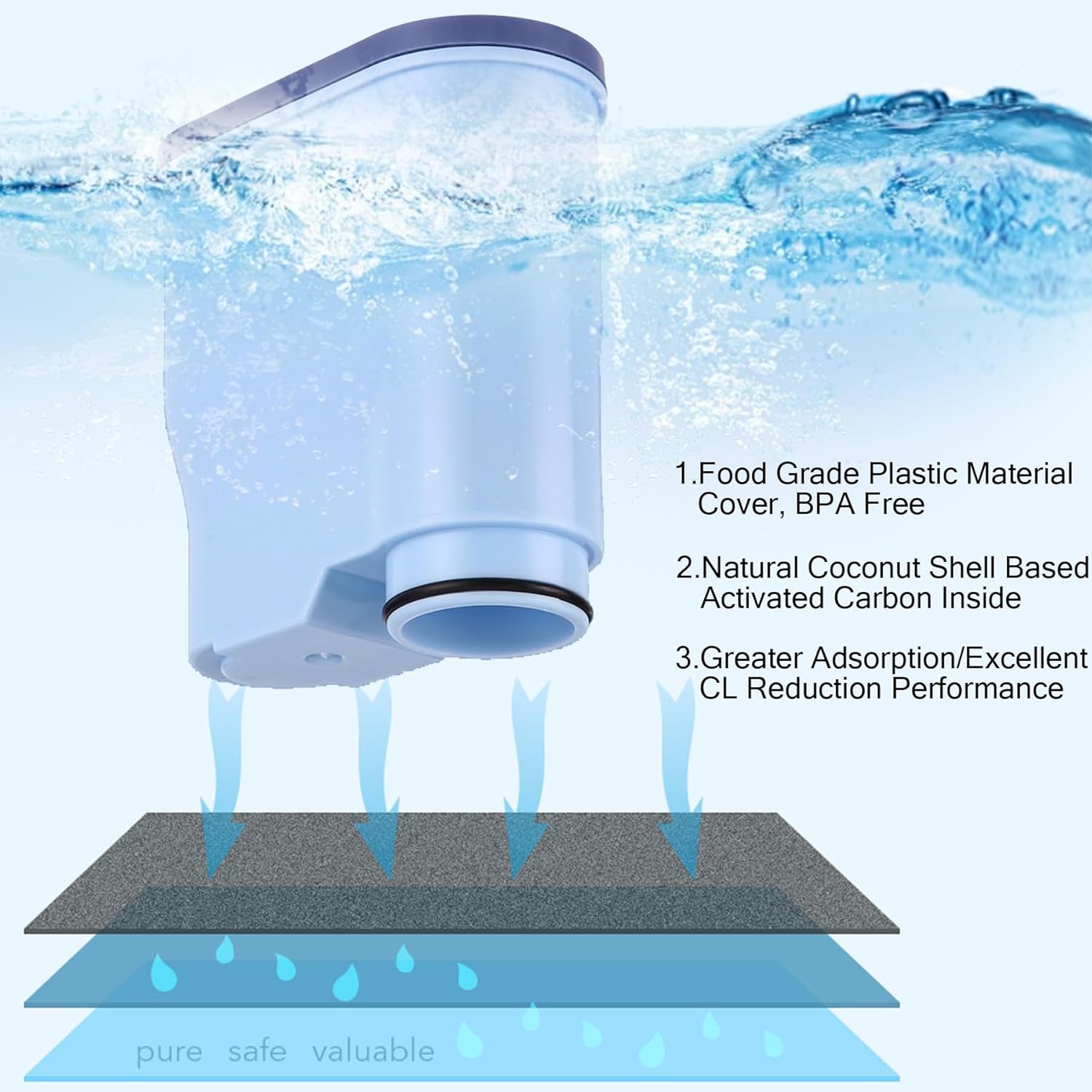 - 2、【High Efficiency Filtration】:The espresso machine water filter is made of high quality materials such as natural coconut shell activated carbon and food-grade ion exchange resin, which can effectively reduce chlorine, heavy metals, impurities and odors according to third-party laboratory tests to ensure the highest purity and health of drinking water.
