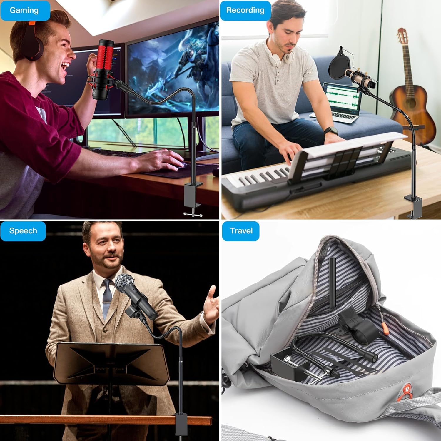 • 【Flexible Mounting and Portability】This versatile microphone snake clamp stand is designed for easy mounting on desks, podiums, pulpits, coffee tables, and announcers' tables. Its flexible design allows you to roll it up for space-saving storage and convenient portability, making it ideal for travel or business trips. Perfect for recording and live streaming wherever you go.