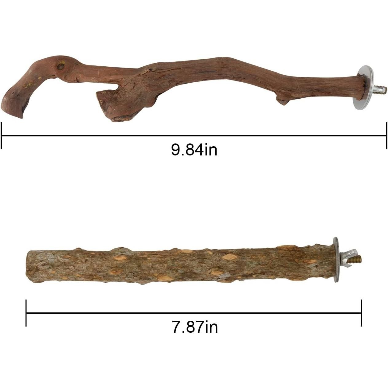 • 【Bird's Natural Habitat Station】 5PCS, Every bird perch is different!!! Made of natural wood----3 Grape Woods Stand, 2 Stand. Create a natural habitat and let your friends live just like in nature. The bird perch measures about 9 inches and the bird wooden stand platform is about 7 inches. Please check the size of the item before purchasing.