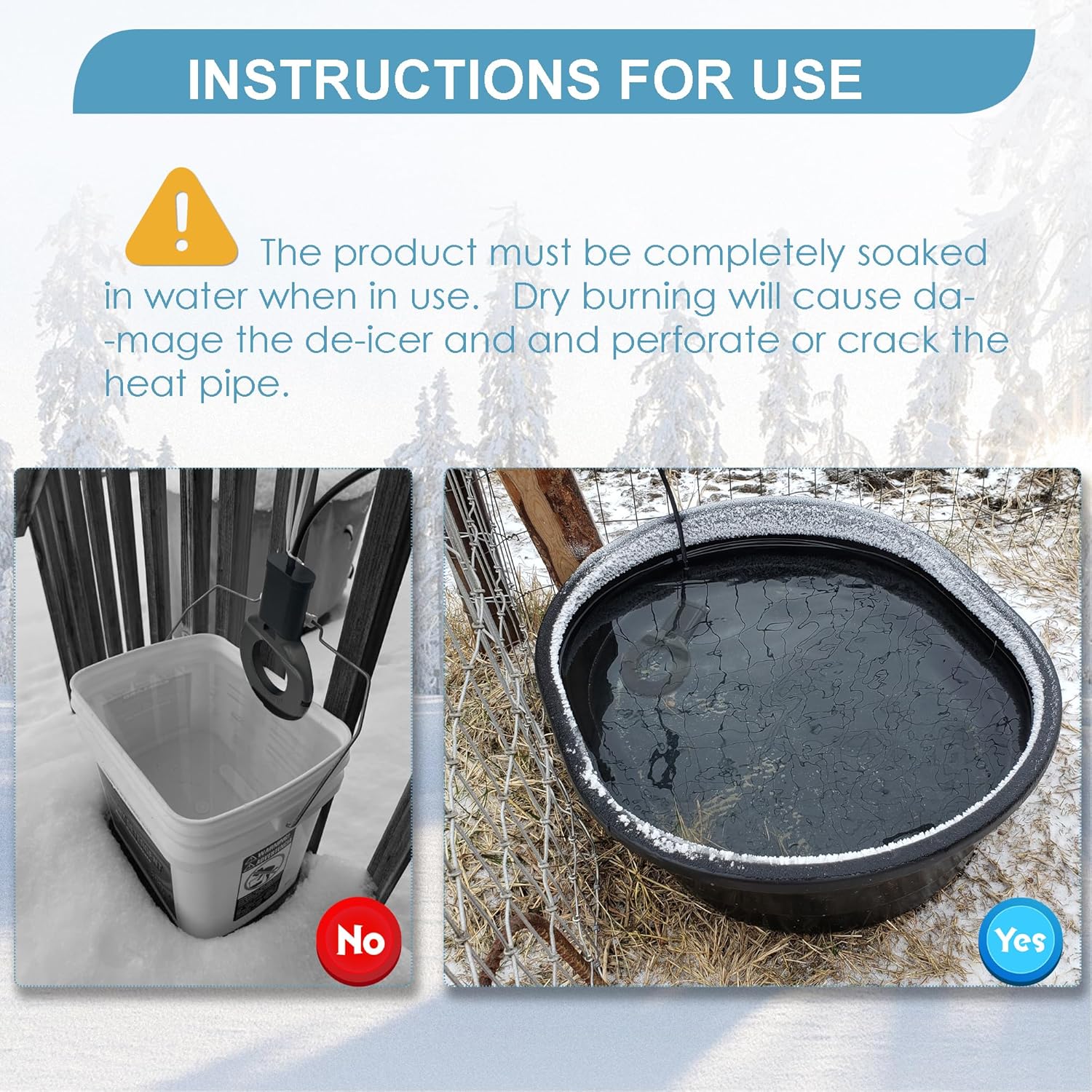 Premium Quality Material: The de-icer is made of high quality cast aluminum with anti-rust coating on the surface, not easy to rust and keep the water clean. Safe for use in a variety of containers including plastic, structural foam and metal tanks