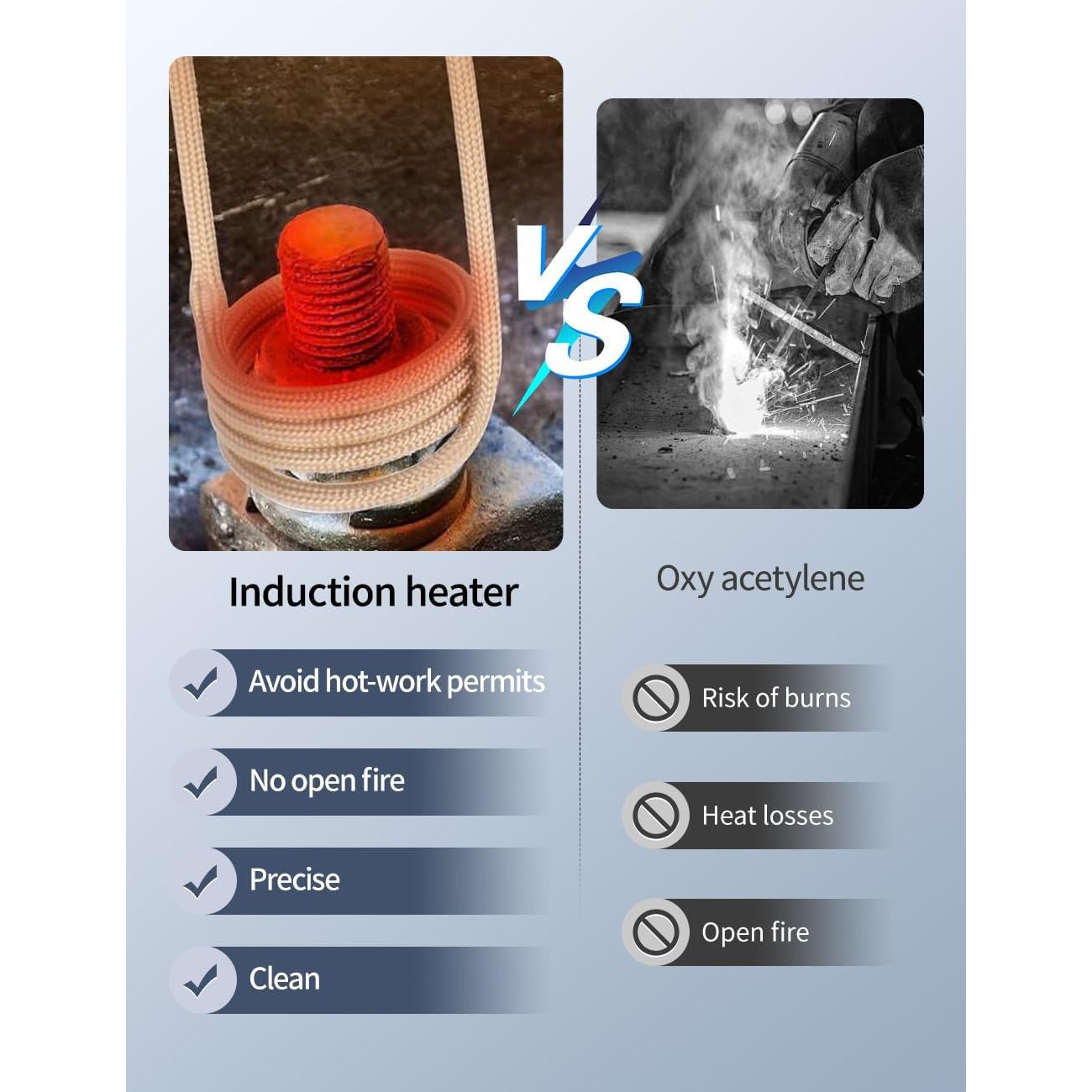 • [30 SECONDS FAST HEATING] The induction heater tool uses electromagnetic fields to heat metal faster, more precisely, and more efficiently than oxy-acetylene systems
