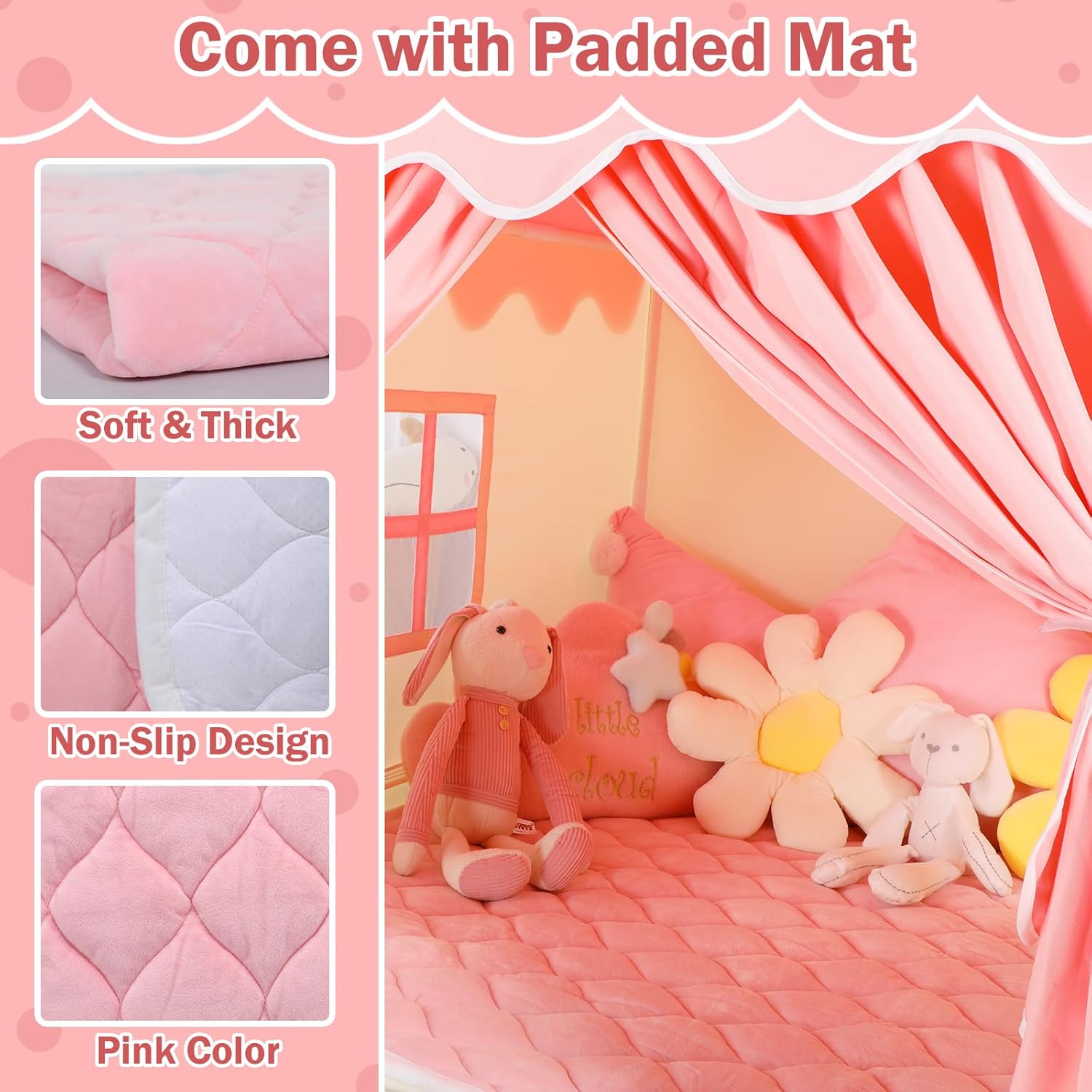 - Pink Mat: This kids play tent comes with a pink, padded mat that is designed to be non-slip. The thick mat ensures safer playtime, more comfortable reading, and napping inside the tent, allowing children to enjoy more fun freely. Also is suitable to be a first birthday gift for girls.
