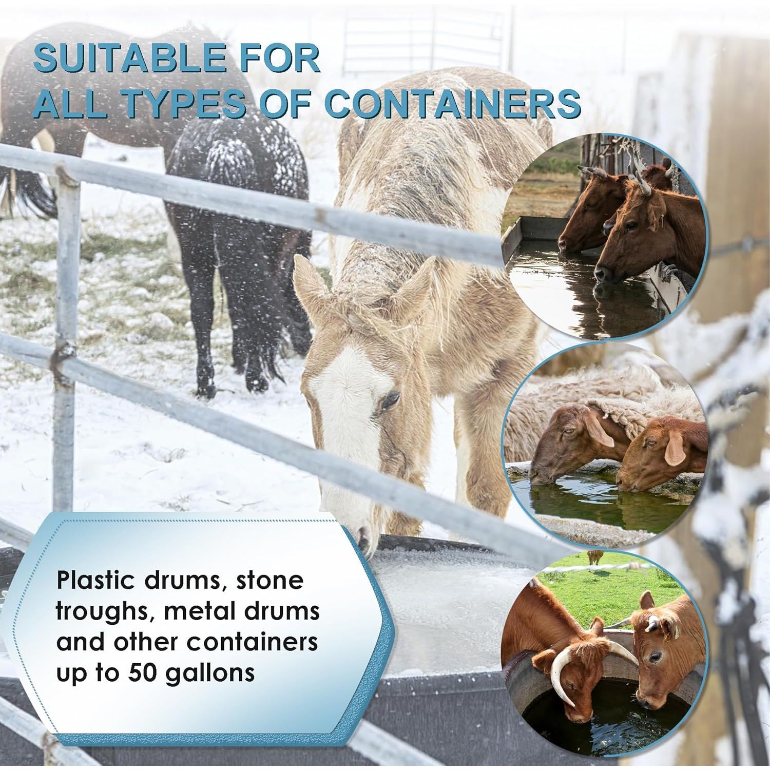 • Premium Quality Material: The de-icer is made of high quality cast aluminum with anti-rust coating on the surface, not easy to rust and keep the water clean. Safe for use in a variety of containers including plastic, structural foam and metal tanks