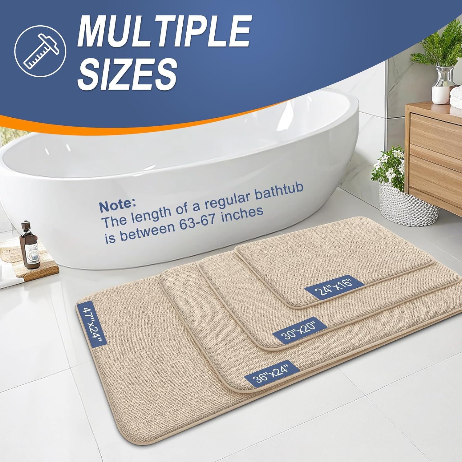 - [Multi-functional Luxury] memory foam bath mats come in a variety of sizes to meet the size requirements of different Spaces. Whether placed beside the bathtub, shower or washbasin, it allows you to feel the soft and luxurious touch beneath your feet, enhancing your bathing experience with timeless elegance.
