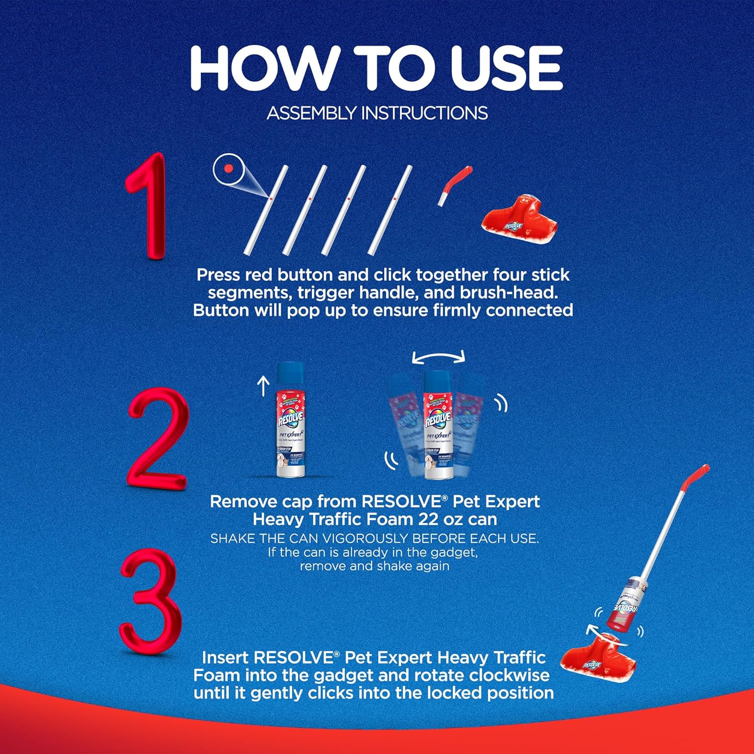 • High-traffic & large area carpet cleaner gadget with 22oz Pet Expert Heavy Traffic Foam Can refill